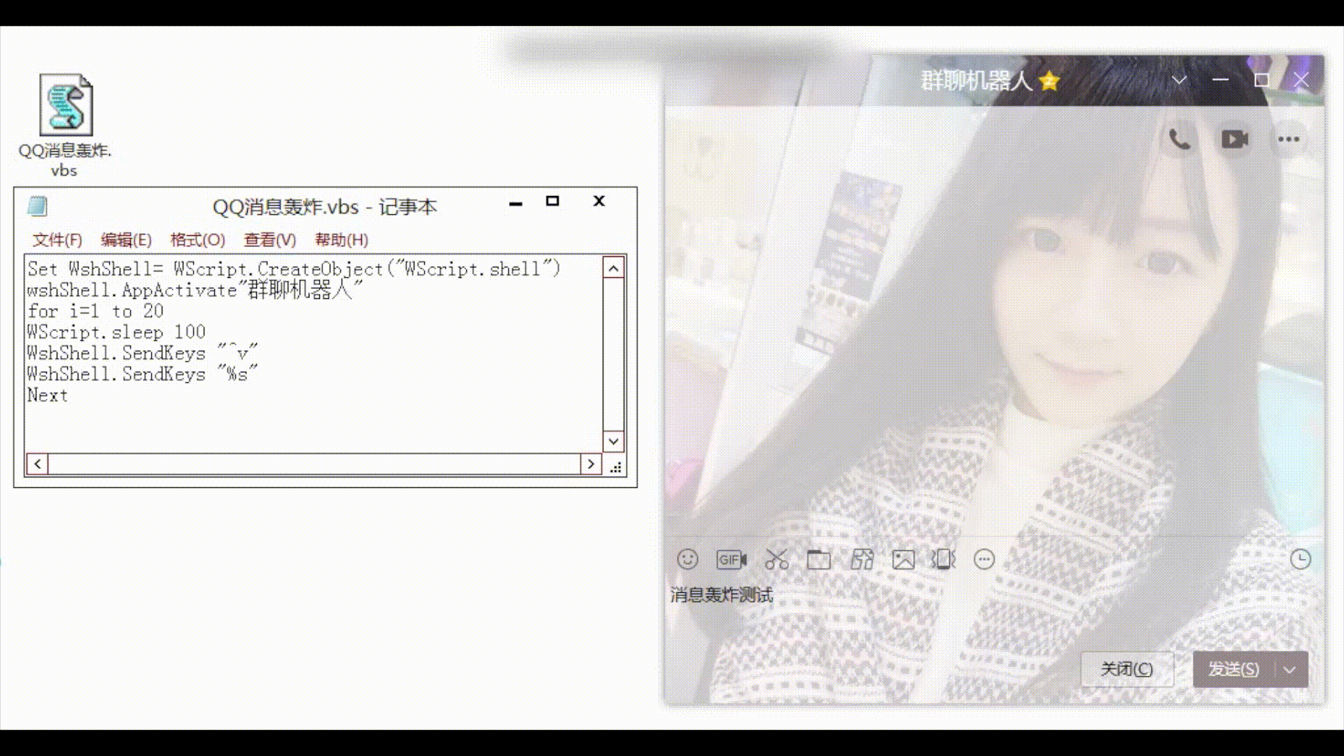 用.vbs脚本实现QQ微信消息轰炸
