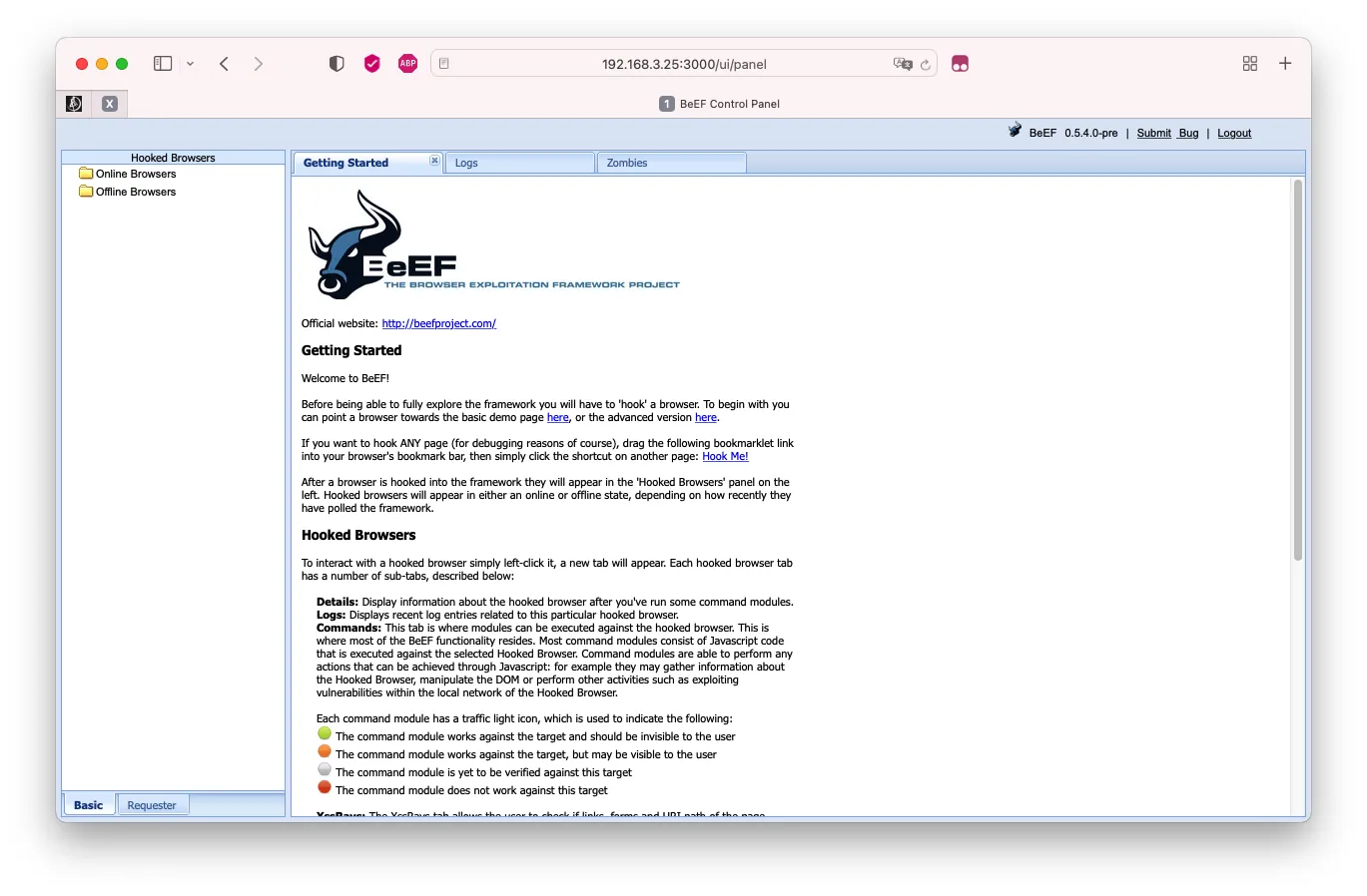BeEF is short for The Browser Exploitation Framework. It is a penetration testing tool that focuses on the web browser.(官网)