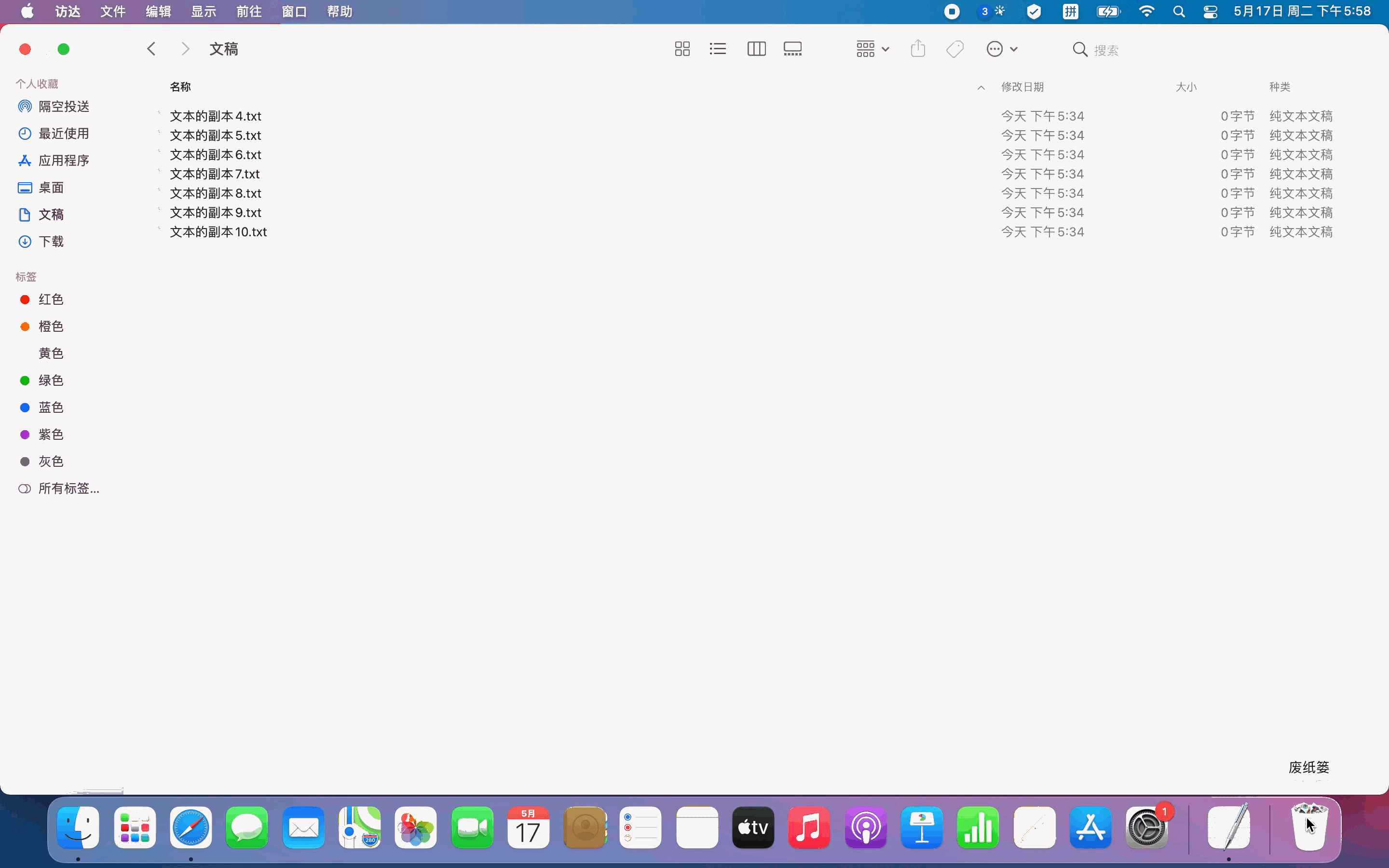 - 右键废纸篓,选择清倒废纸篓