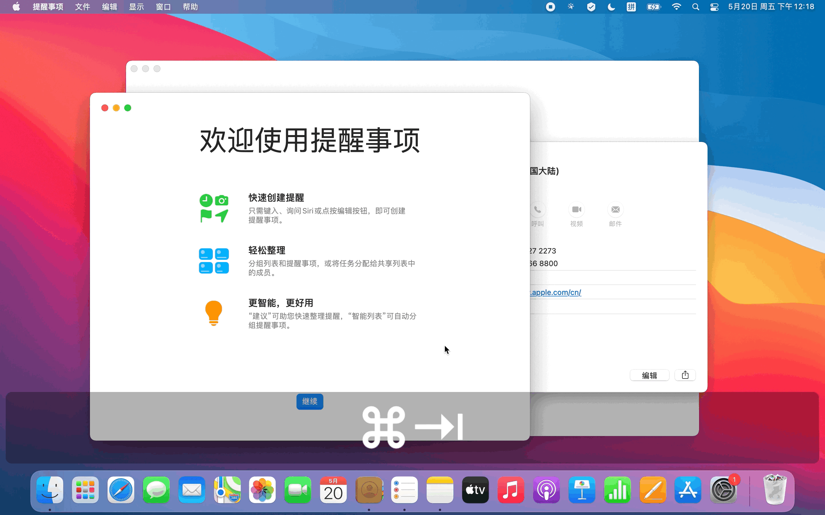 command键不放,按下tab键召唤迷你程序坞,迷你程序坞可以实现程序的快速切换在成功召唤程序坞的情况下,保持按住