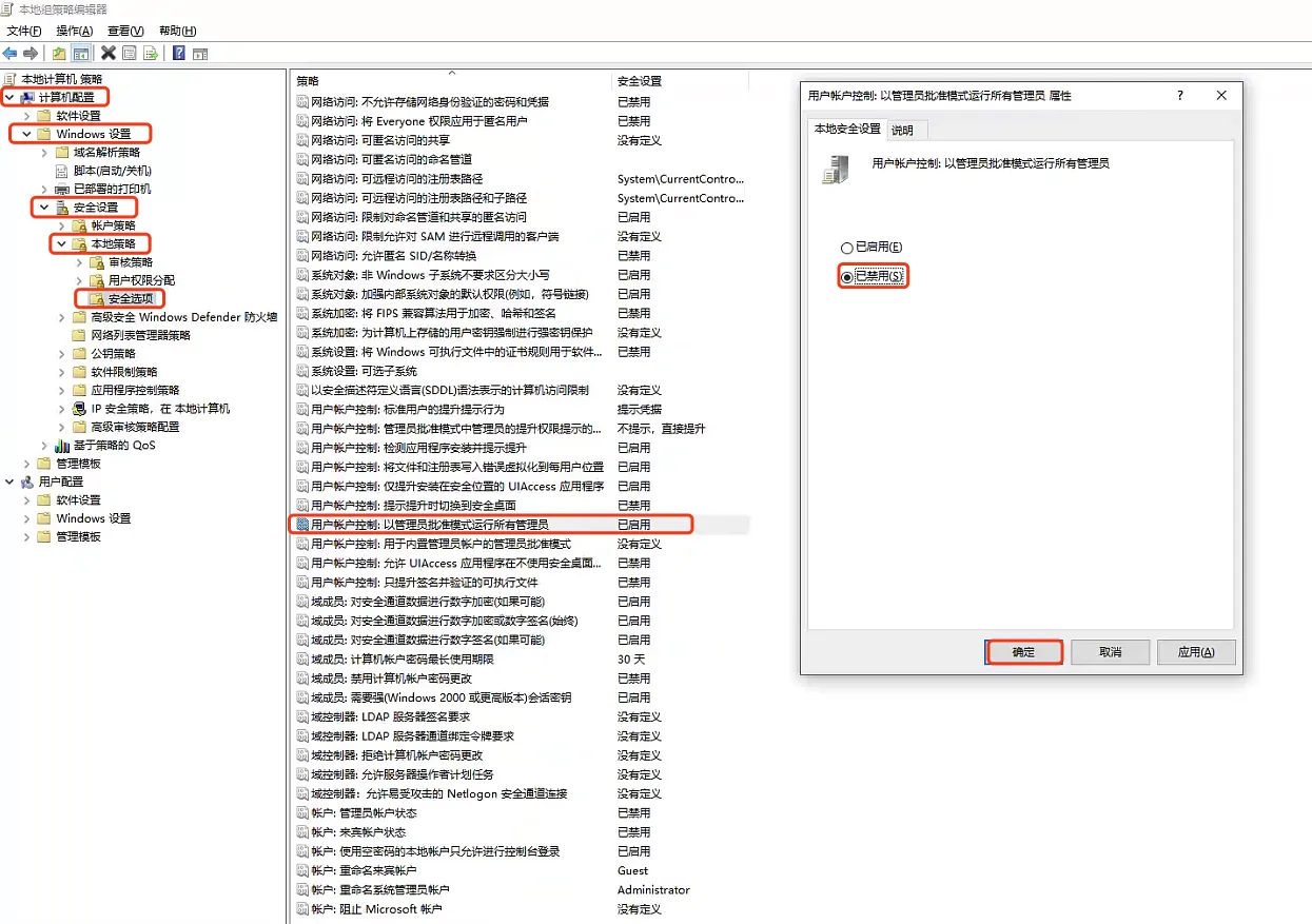【踩坑】Windows10输入法消失 发表于 2023-03-27 更新于 2025-12-26 阅读次数: 前言Windows10右下角输入法图标消失,在设置中显示输入法(仅桌面) 解决问题 gpedit.msc打开组策略编辑器->计算机配置->Windows设置->安全设置->本地策略->安全选项->将用户账户控制:以管理员批准模式运行所有管理员改为已禁用 完成参考文献CSDN——qq_43480492