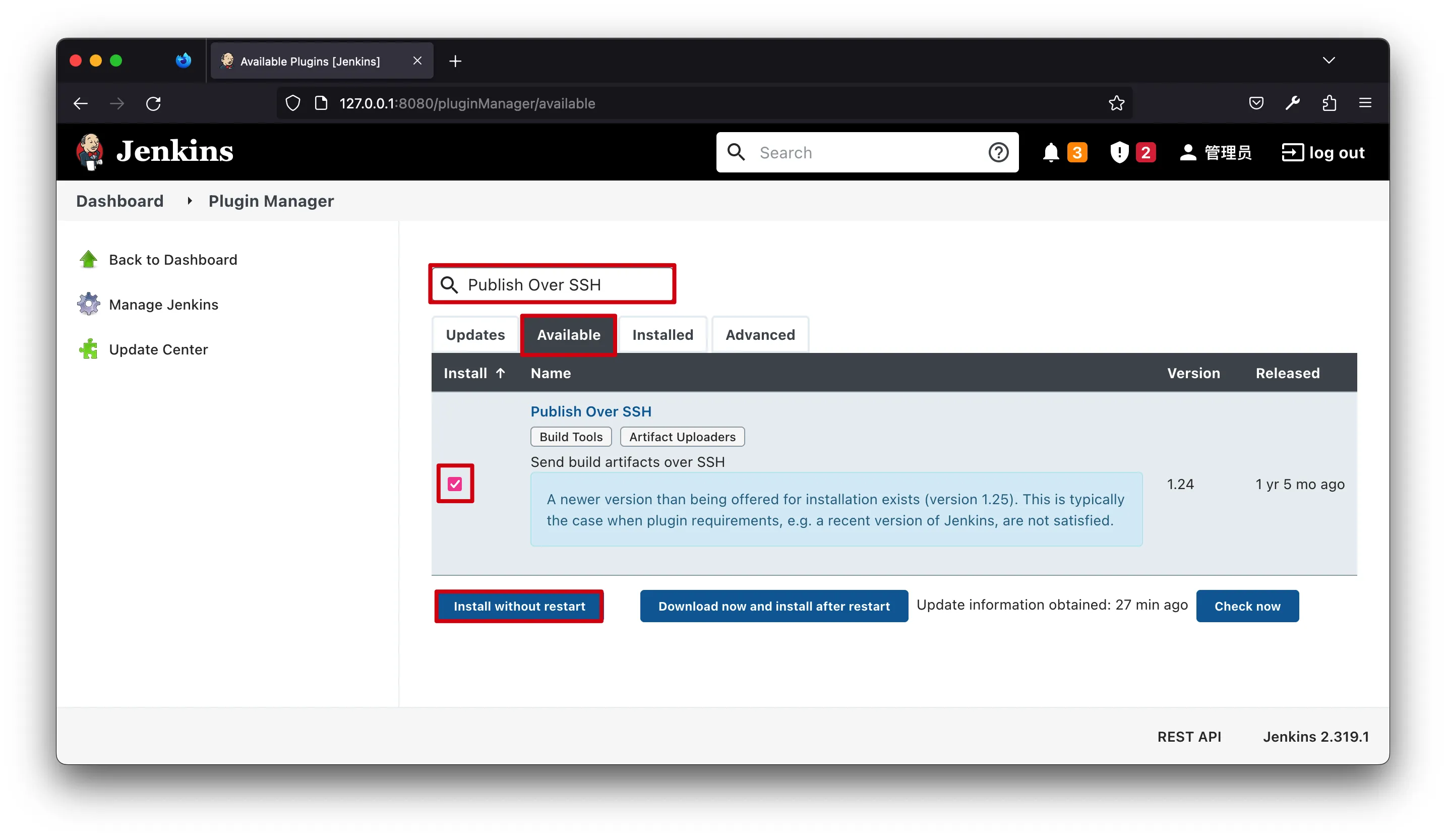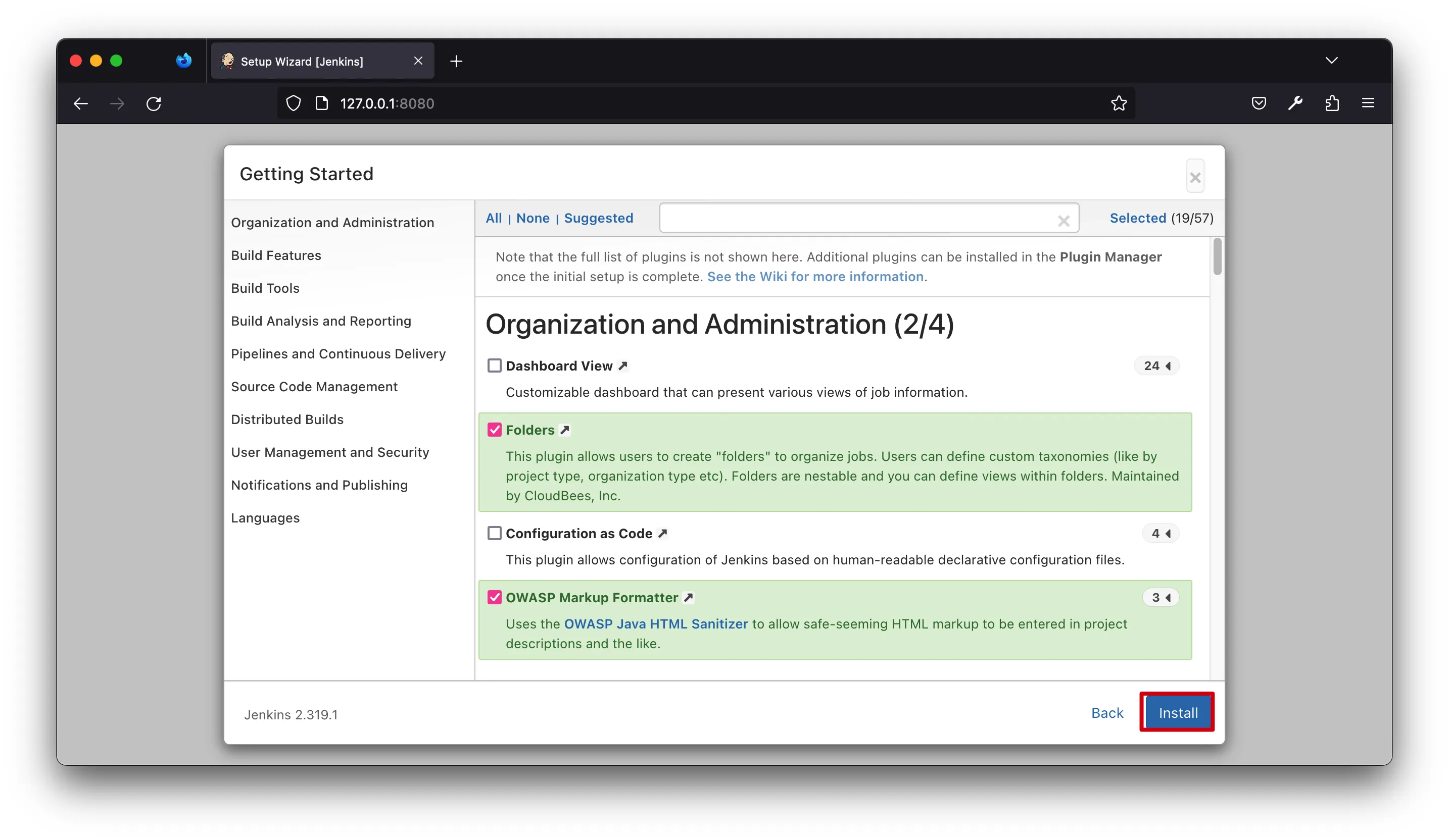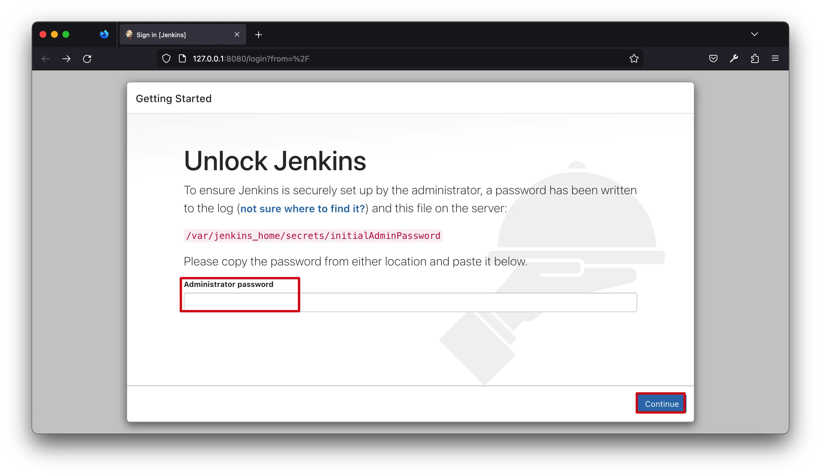- 访问http://127.0.0.1:8080,使用初始密码登录->