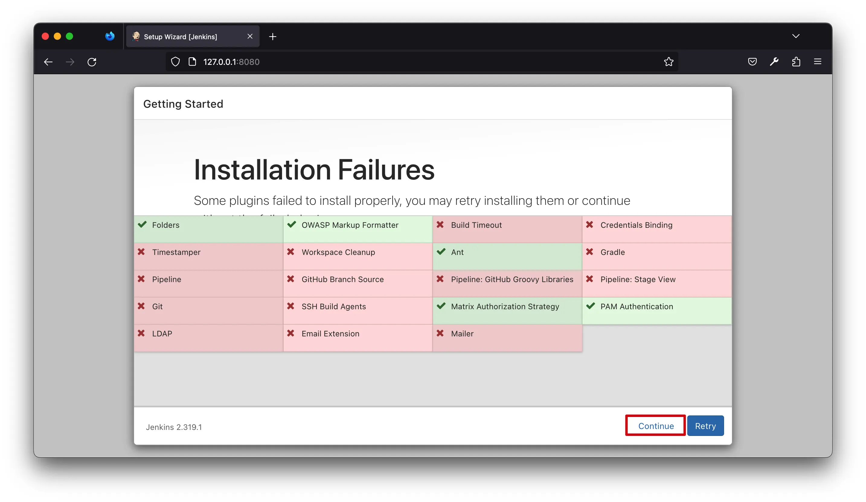 Continue跳过,因为可以稍后重新下载或手动安装插件