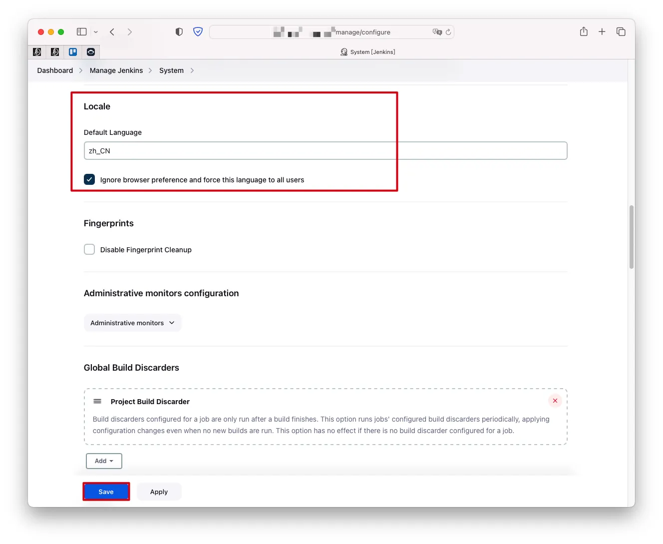 Manage Jenkins->Plugins->Available plugins->搜索并安装Locale插件