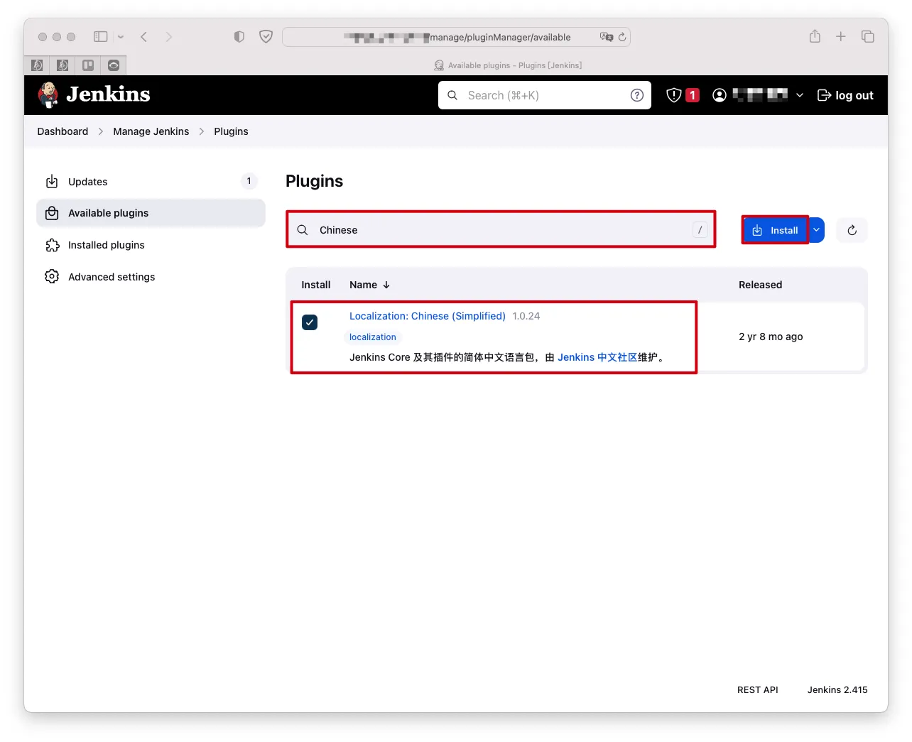 - 如果出现部分翻译的结果,通过http://127.0.0.1:8080/restart重启Jenkins即可,如果仍然部分翻译,继续重启直至全部翻译即可