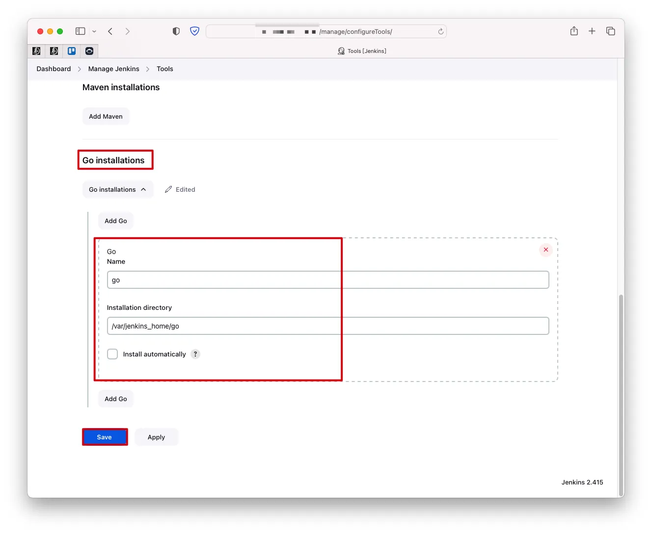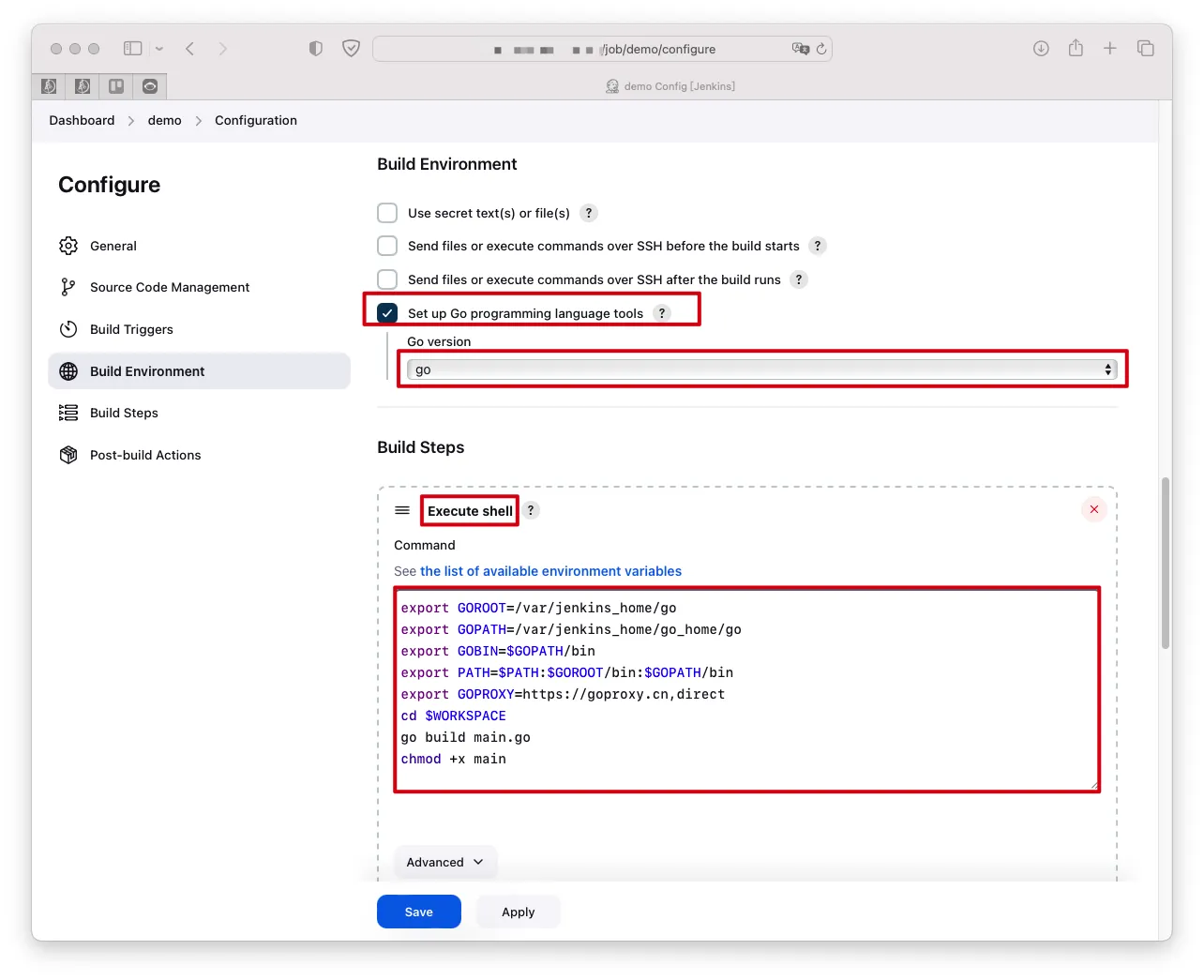 - 此时Jenkins已经存在Go的编译环境了,但是还需要配置到配置中,成为环境变量