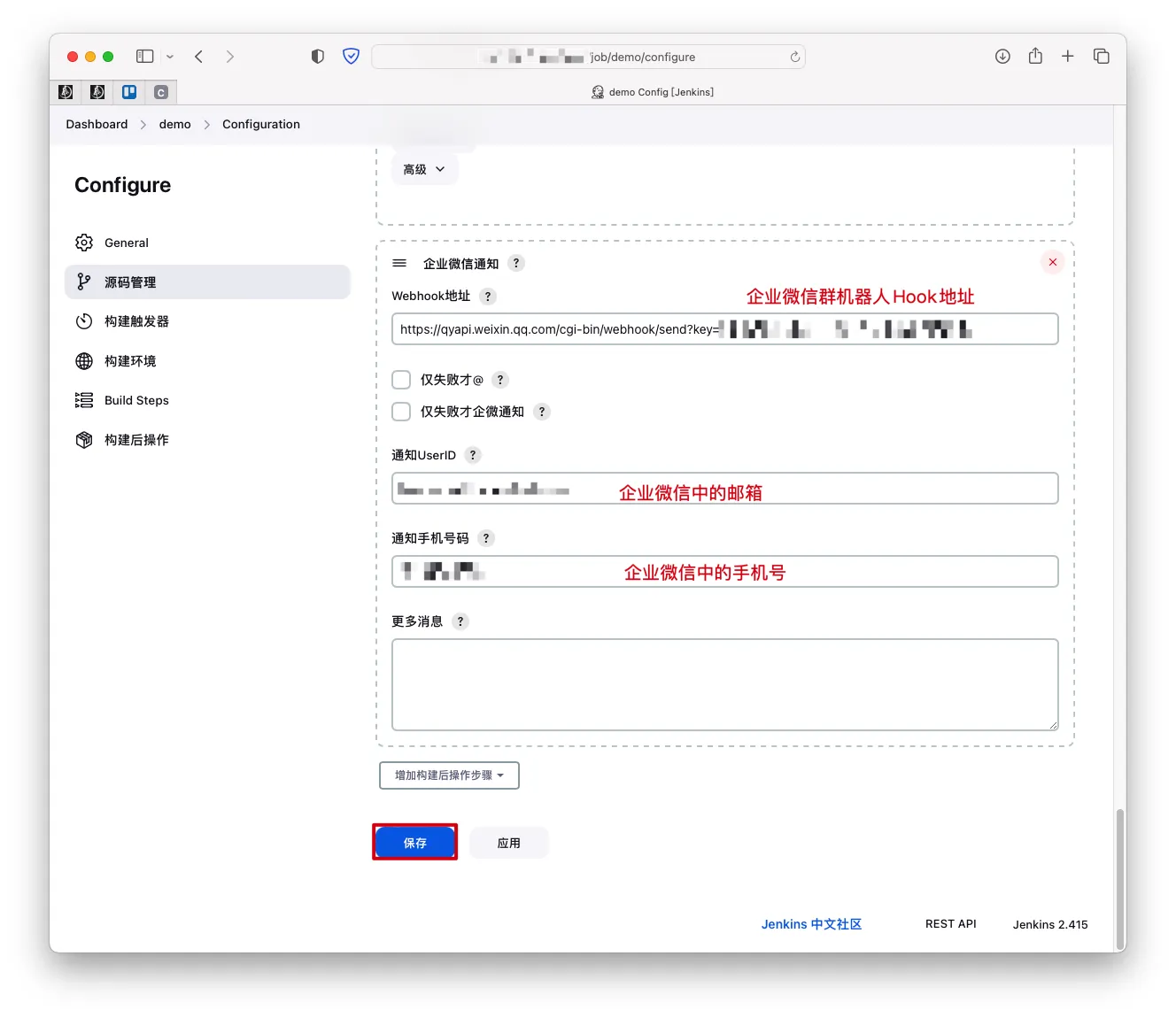 【笔记】Jenkins对接企业微信 发表于 2023-07-27 更新于 2025-12-19 阅读次数: 前言Jenkins对接企业微信,通过企业微信内的机器人,实现在完成构建后自动向企业微信群聊发送消息 安装插件 Manage Jenkins->Plugins->Available plugins->搜索并安装Qy Wechat Notification插件 配置任务 完成参考文献CSDN——XZxiaoz