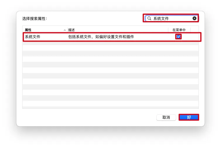【笔记】MacOS通过访达搜索系统文件 发表于 2023-11-04 更新于 2025-12-19 阅读次数: 前言MacOS通过访达搜索系统文件 正文 在搜索界面选择+添加筛选参数 修改第一个参数 选择其他 勾选系统文件->好 在搜索时,选择第一个参数为系统文件,第二个参数为包括 完成参考文献少数派——Minja在UNTAG