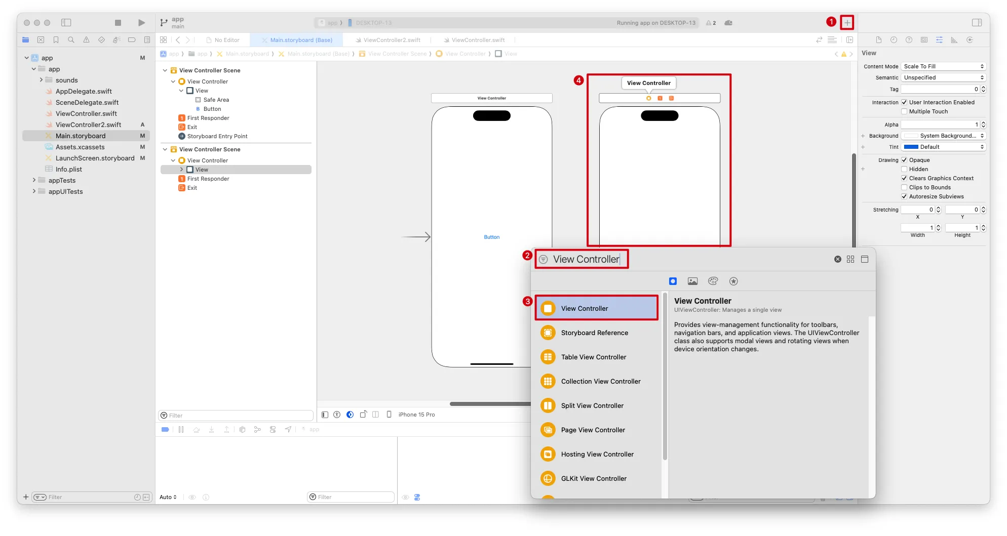 Main.storyboard->+->添加一个View Controller组件到页面中