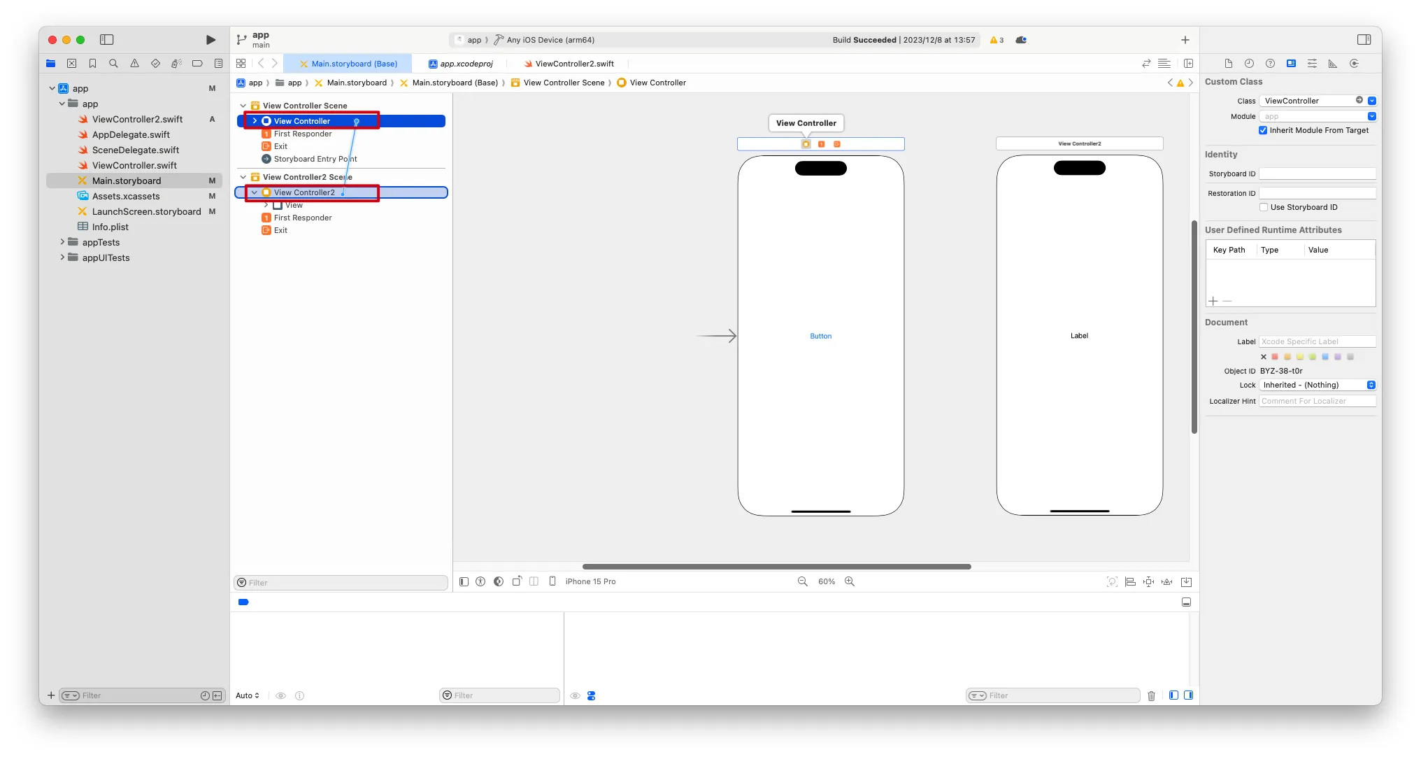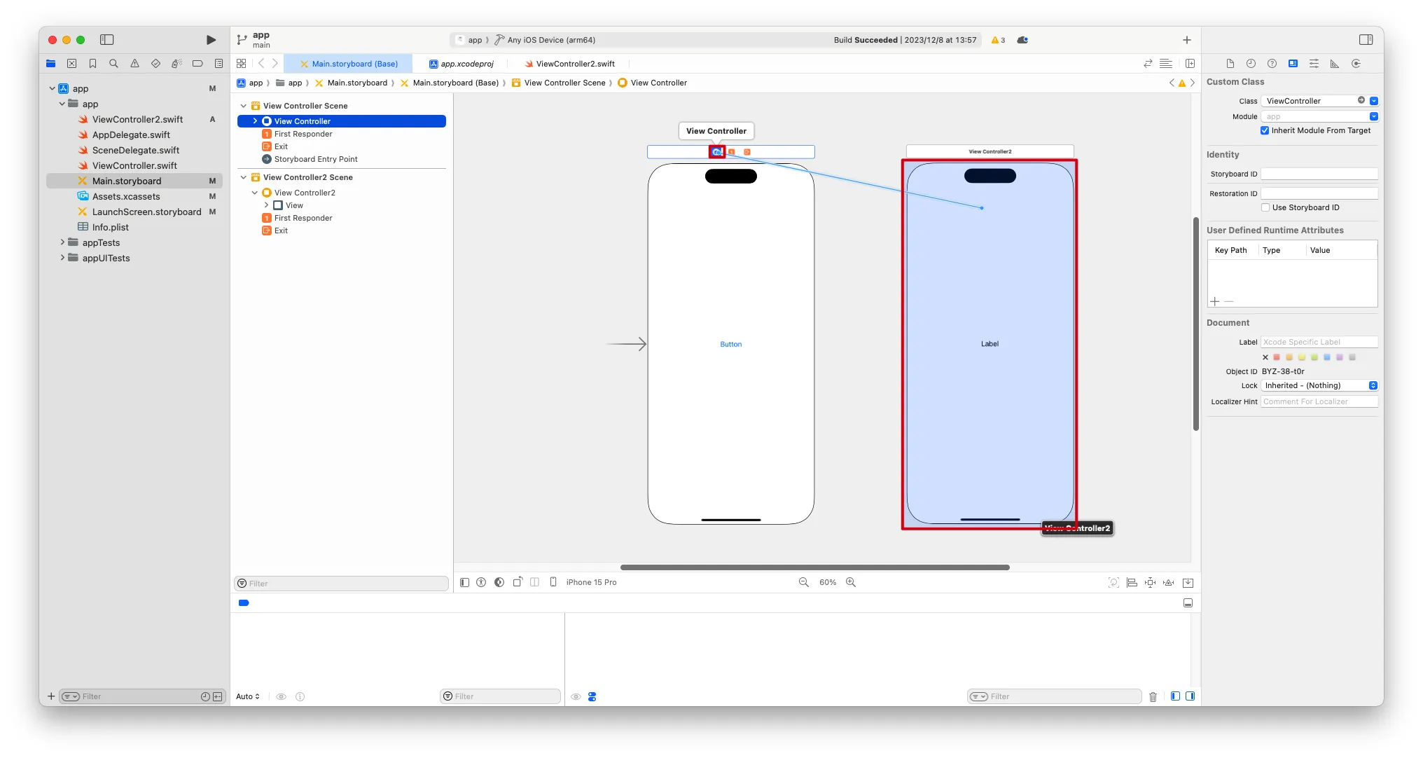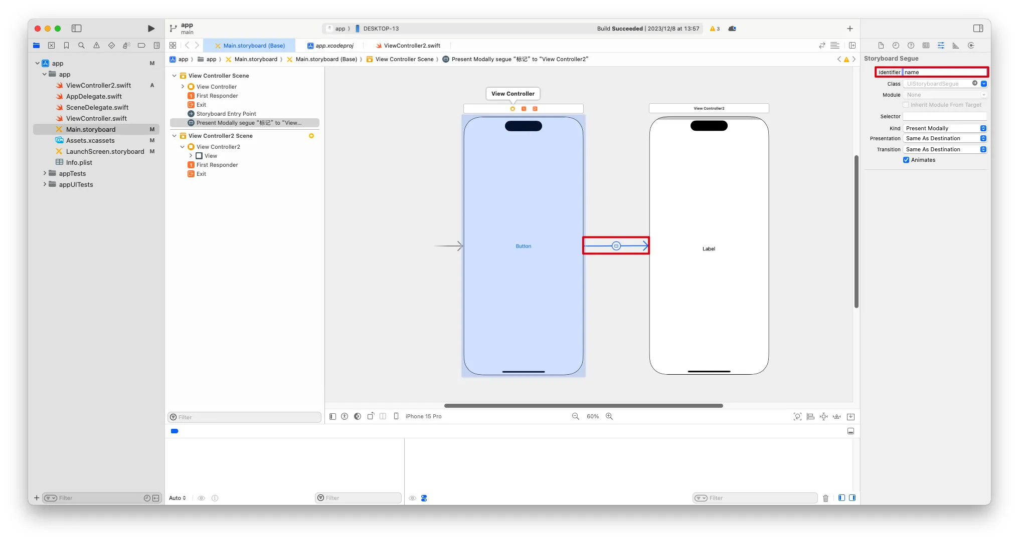 通过storyboard创建新的 View Controller 组件并关联跳转动作