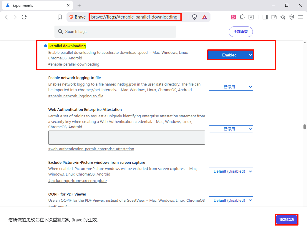 【笔记】浏览器启用并行下载 发表于 2024-01-12 更新于 2026-04-23 阅读次数: 116197443488155955前言浏览器启用并行下载 Google Chrome chrome://flags/#enable-parallel-downloading Microsoft Edge edge://flags/#enable-parallel-downloading Brave brave://flags/#enable-parallel-downloading 完成参考文献哔哩哔哩——小宇Boi