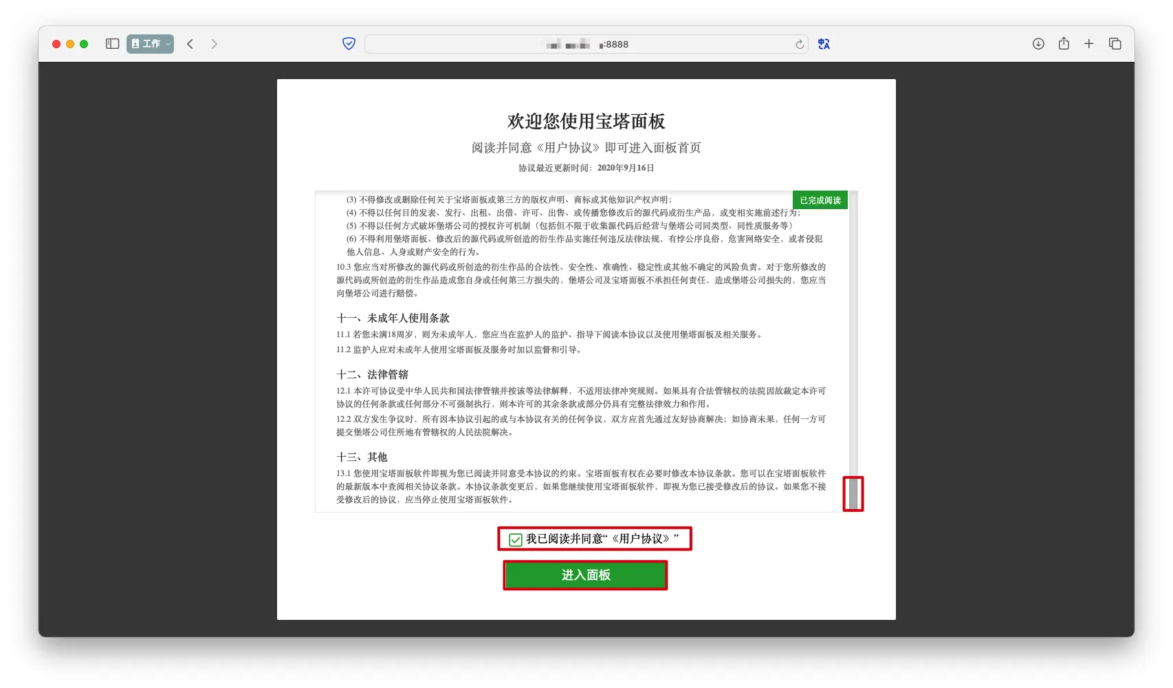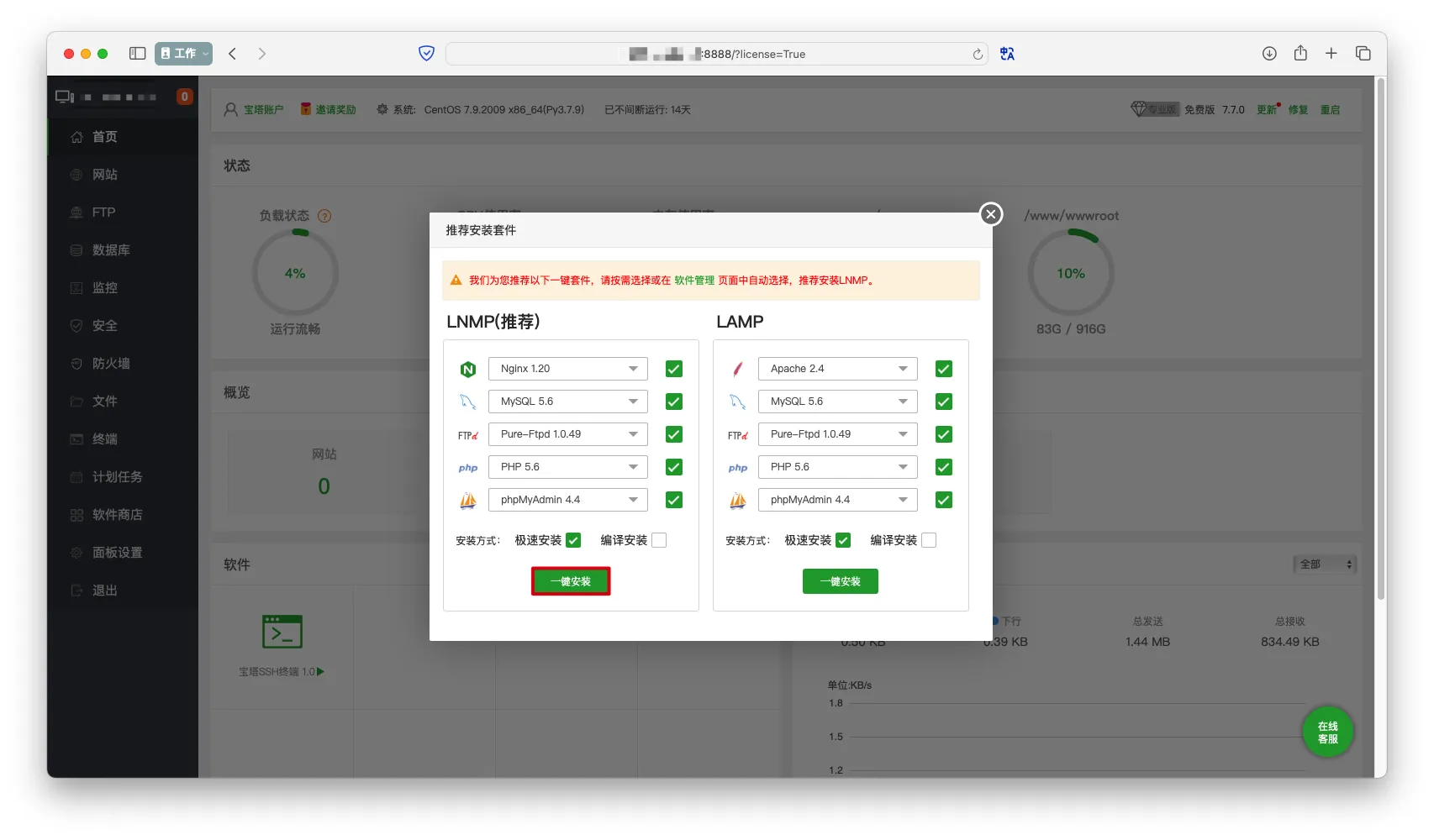 1 | docker run -d --name baota -p 8888:8888 -v /root/BaoTa/wwwroot:/www/wwwroot -v /root/BaoTa/data:/www/server/data -v /root/BaoTa/vhost:/www/server/vhost btpanel/baota:latest |