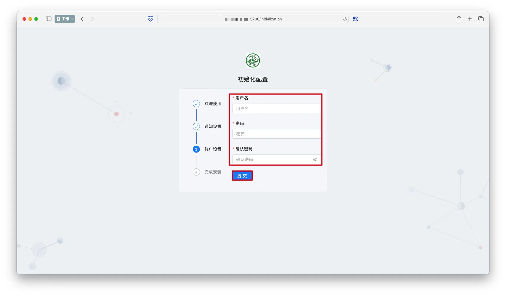 - 使用刚刚设置的用户名和密码登录