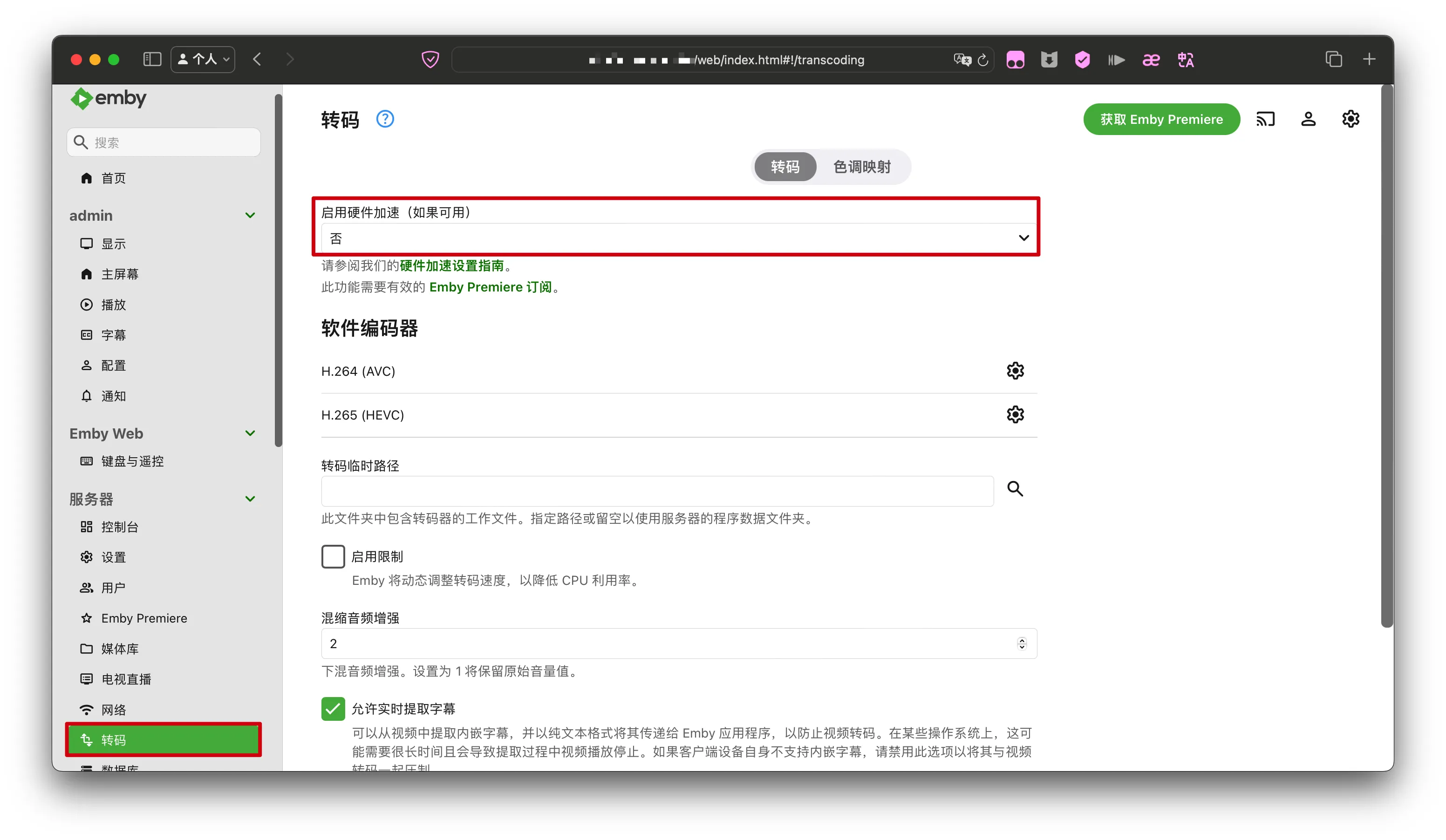 【踩坑】Emby播放视频时报错 发表于 2024-08-30 更新于 2025-12-19 阅读次数: 前言Emby播放视频时报错:当前没有兼容的流。请稍后再试或联系您的管理员以获取详细信息。 解决问题 关闭硬件解码 设置->转码->启用硬件加速选择否->储存 完成参考文献百度贴吧——树的枝