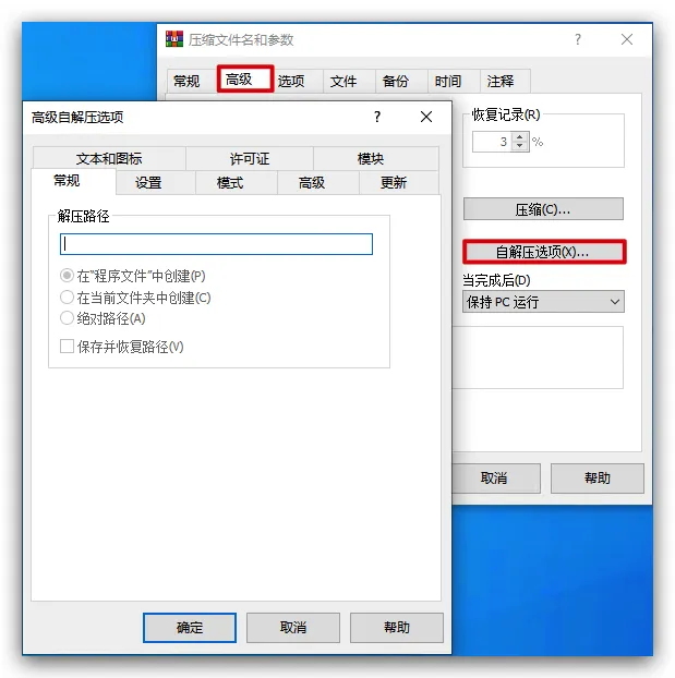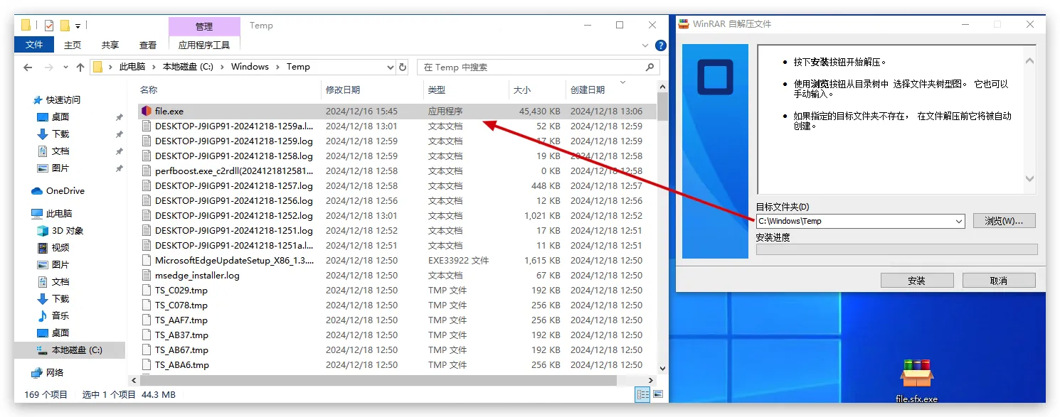 【笔记】WinRAR创建自解压文件 发表于 2024-10-15 更新于 2025-12-26 阅读次数: 前言WinRAR创建自解压文件 准备工作 WinRAR 正文 勾选创建自解压格式压缩文件 高级->自解压选项 常规中设置解压路径为C:\Windows\Temp 设置中设置解压后运行为C:\Windows\Temp\file.exe 更新中勾选解压并更新文件和覆盖所有文件->确定->确定 完成 截图纪念