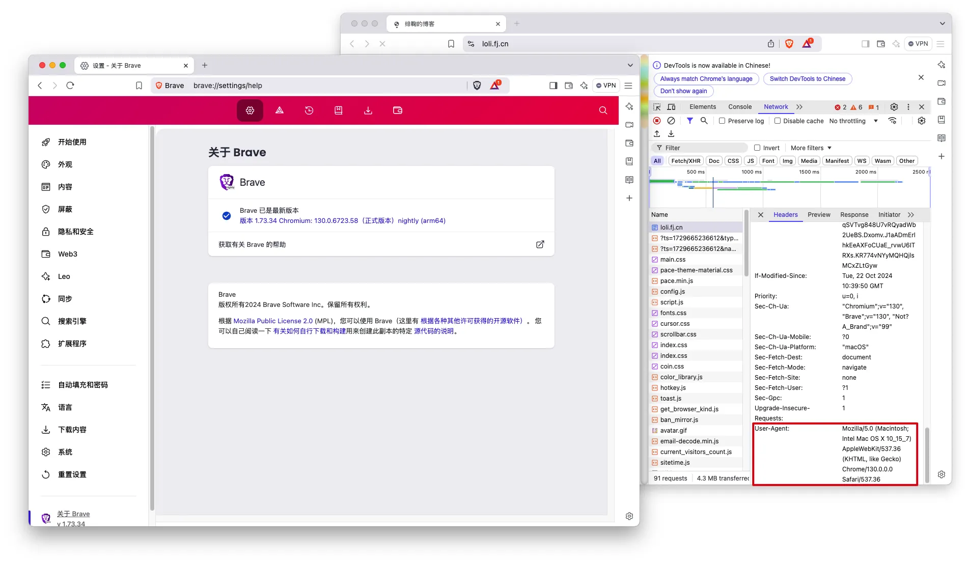 | MacOS | Brave Browser Nightly | Mozilla/5.0 (Macintosh; Intel Mac OS X 10_15_7) AppleWebKit/537.36 (KHTML, like Gecko) Chrome/130.0.0.0 Safari/537.36 |