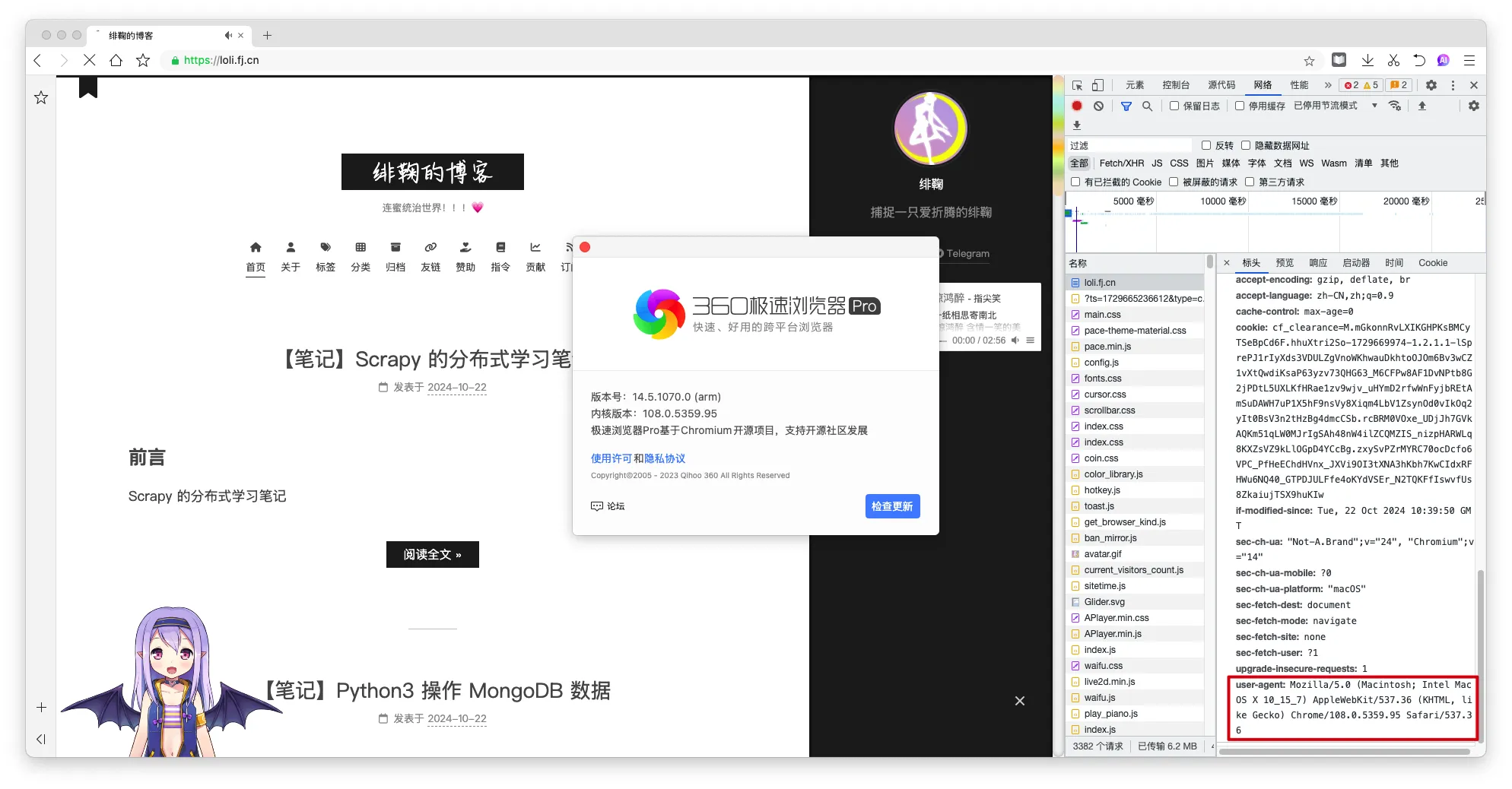 | MacOS | 360浏览器Pro | Mozilla/5.0 (Macintosh; Intel Mac OS X 10_15_7) AppleWebKit/537.36 (KHTML, like Gecko) Chrome/108.0.5359.95 Safari/537.36 |