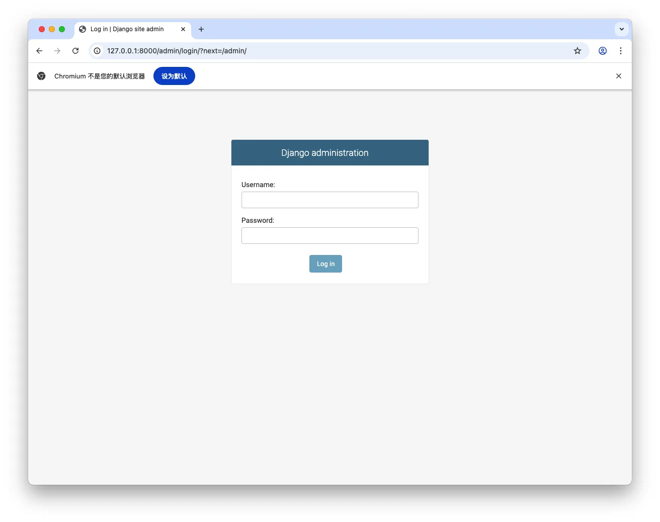 - 访问http://127.0.0.1:8000/admin进入管理员后台