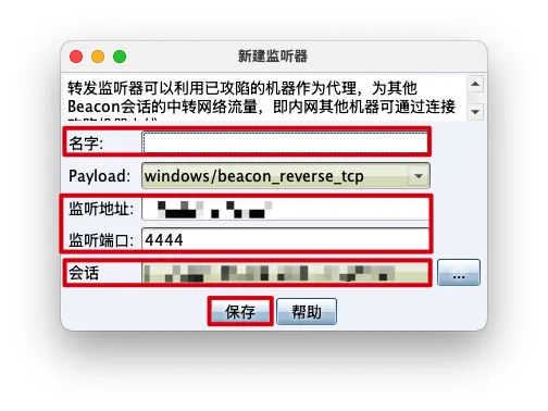 监听地址设置跳板机的IP地址,这个IP地址的网段需要与下一跳的网段保持一致->监听端口设置想要在跳板机开放的端口->会话选择已经建立的跳板机的会话