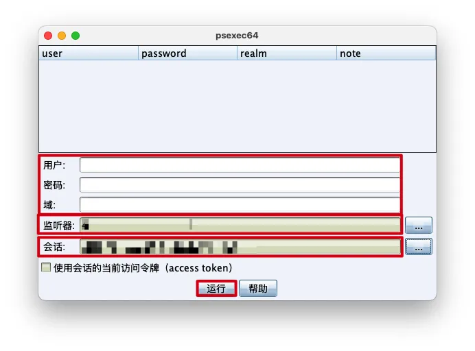 用户名、密码、域->监听器设置为上一步骤创建的监听器->会话选择可以对目标进行SMB访问的跳板机的会话->运行