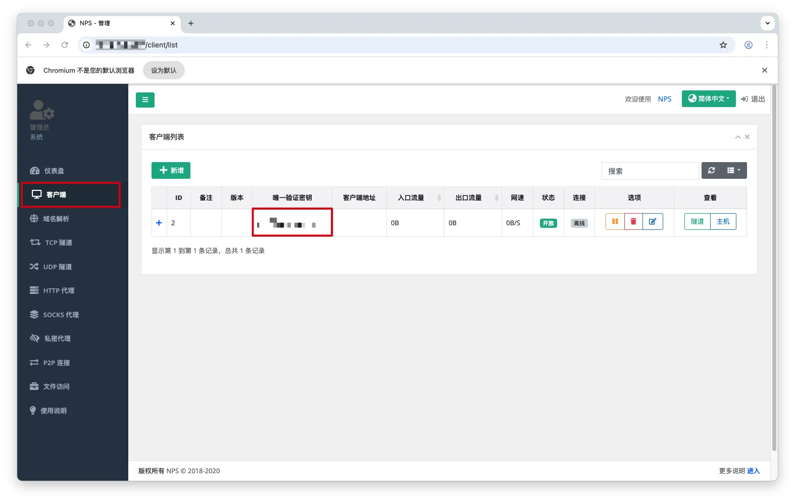 <ip>:服务端IP地址<vkey>:上一步骤获取的唯一验证密钥