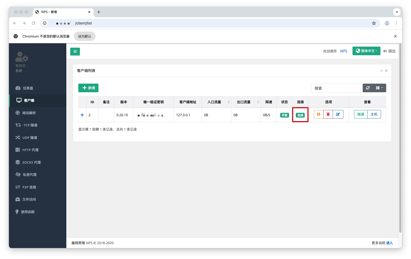 1 | ./npc -server=<ip>:8024 -vkey=<vkey> |