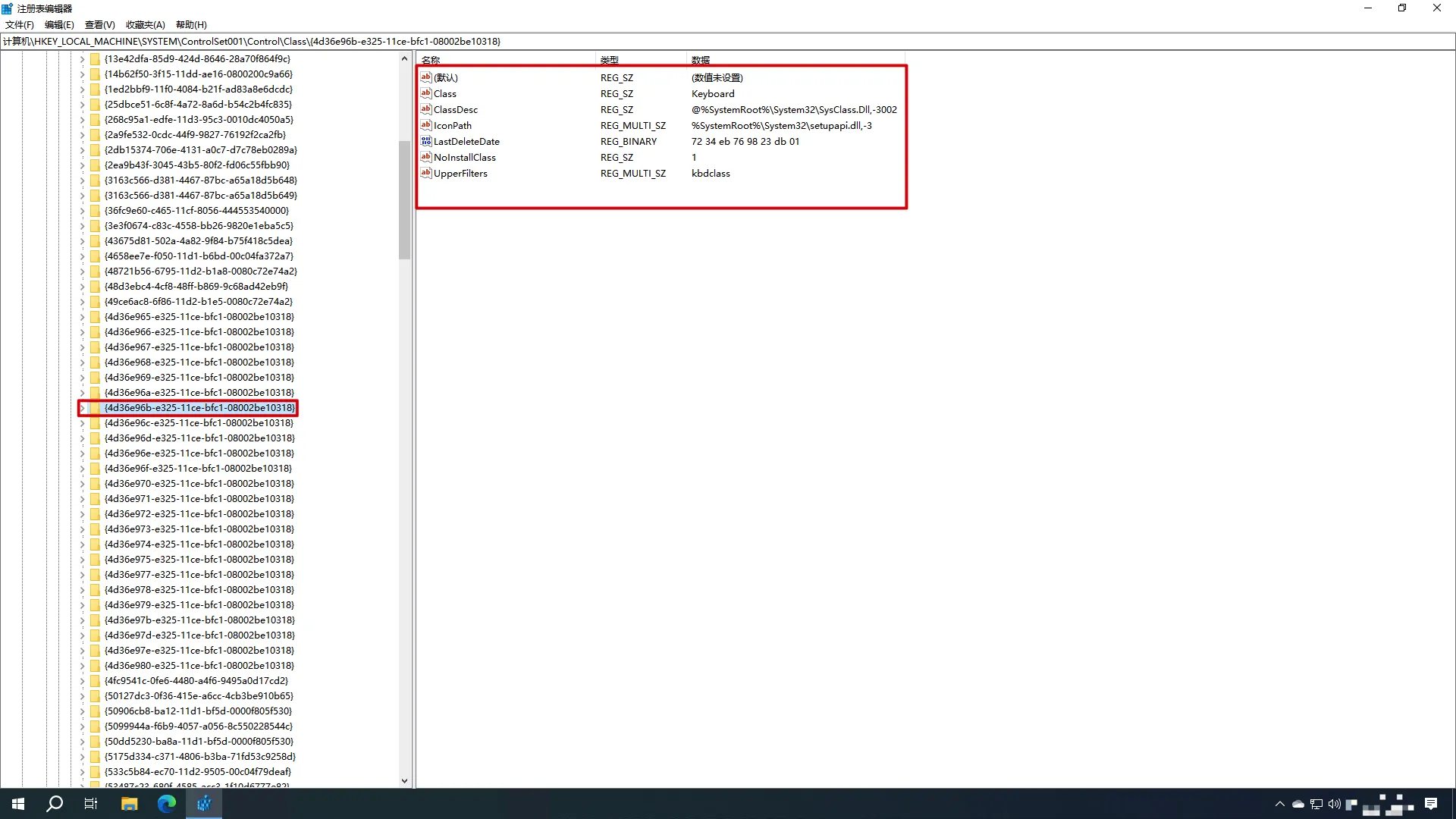 HKEY_LOCAL_MACHINE\SYSTEM\ControlSet001\Control\Class\{4d36e96b-e325-11ce-bfc1-08002be10318}的值以修复键盘配置