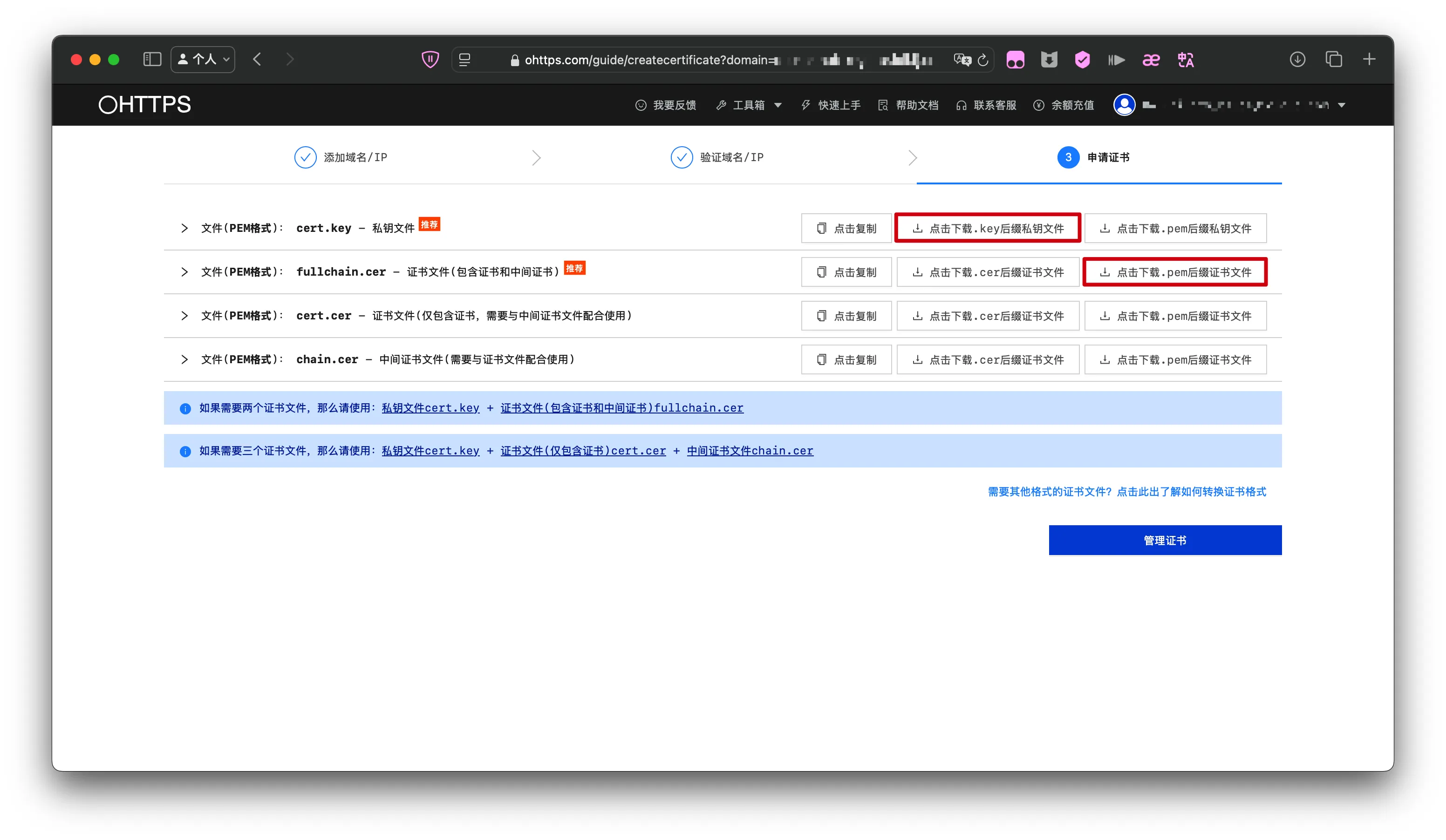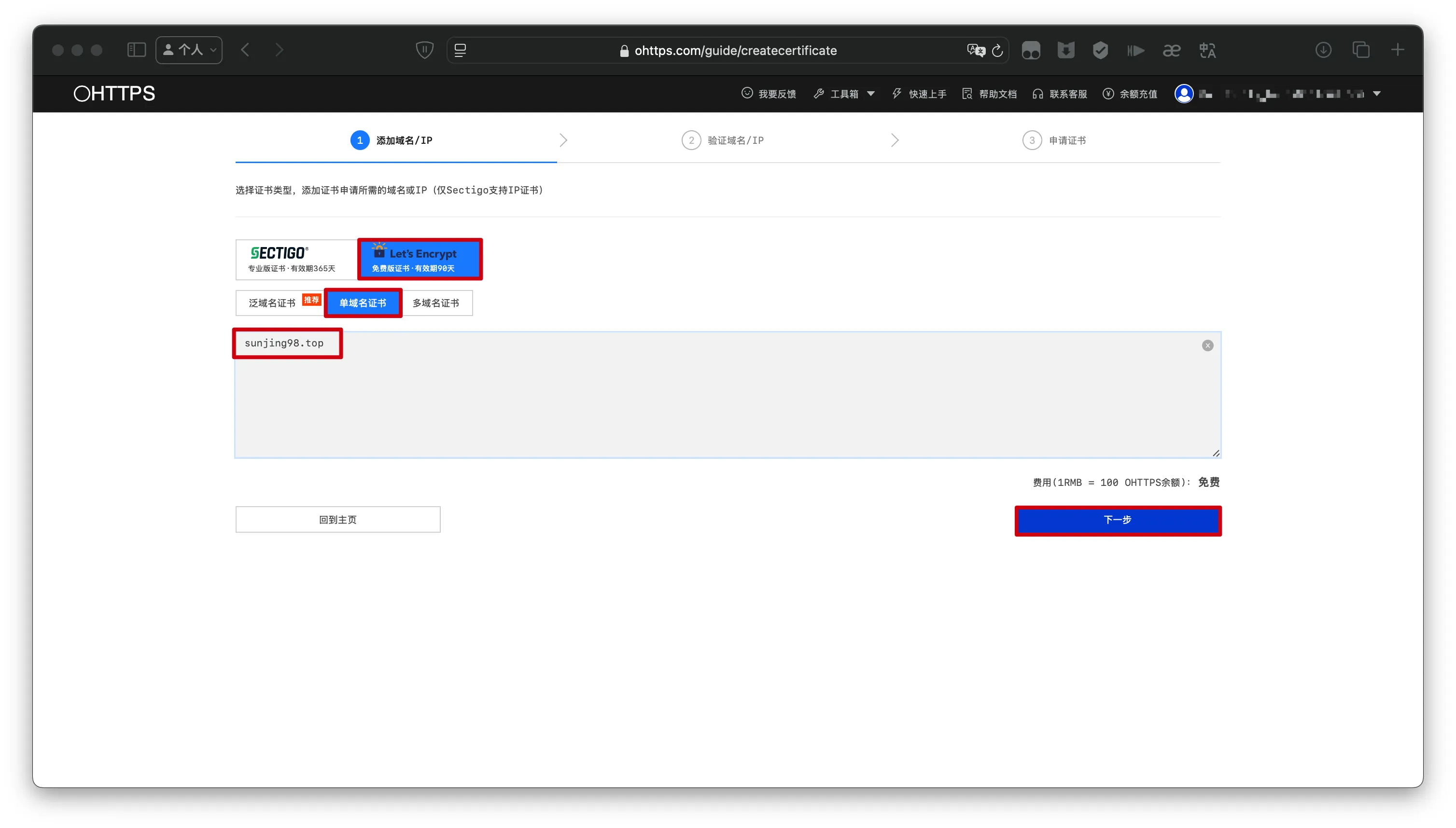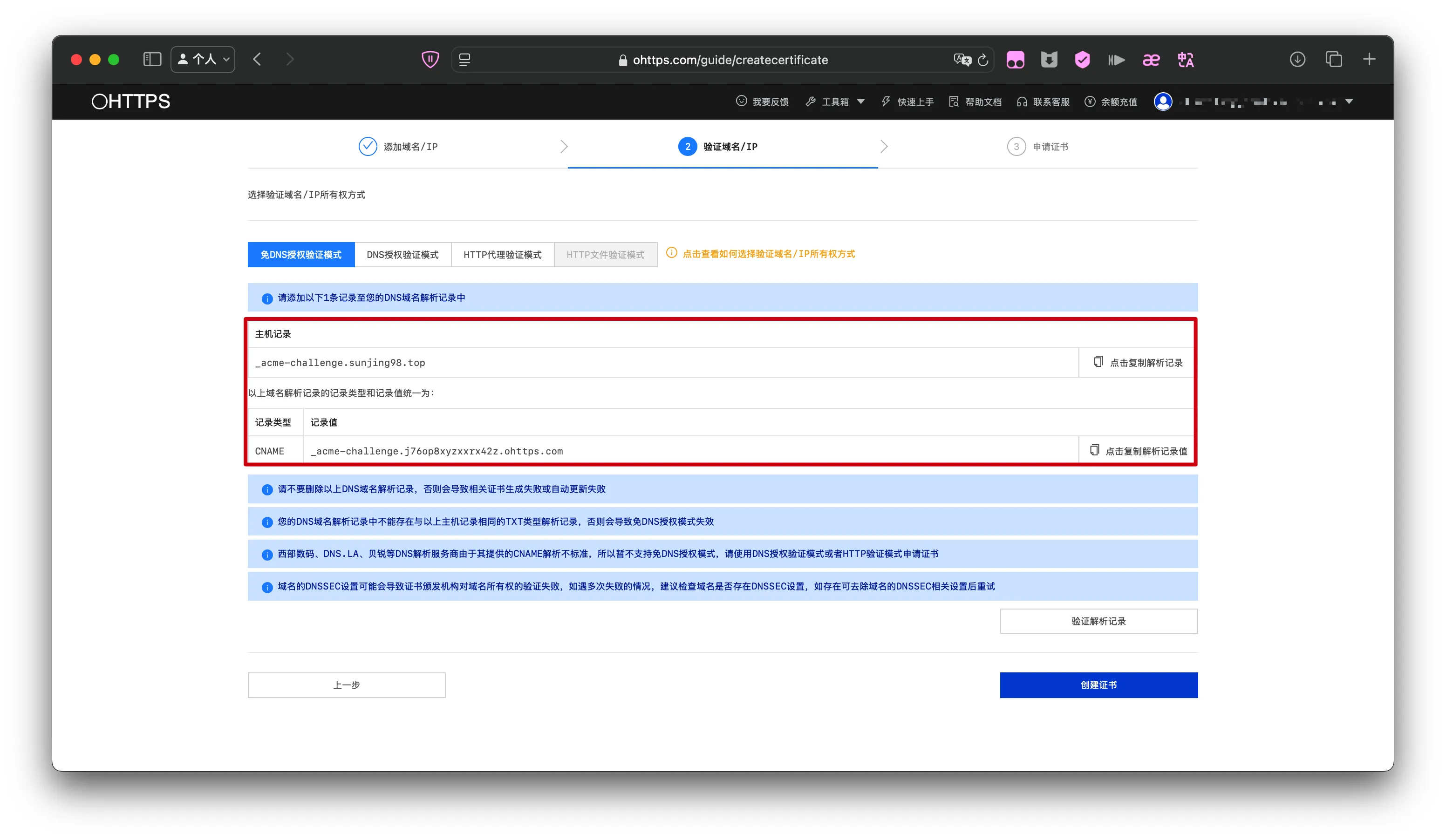 【笔记】OHTTPS申请SSL证书 发表于 2024-11-10 更新于 2025-12-26 阅读次数: 前言OHTTPS申请SSL证书 正文 注册并登录https://ohttps.com 选择套餐并填写域名 认证域名 下载证书 完成参考文献知乎——phris