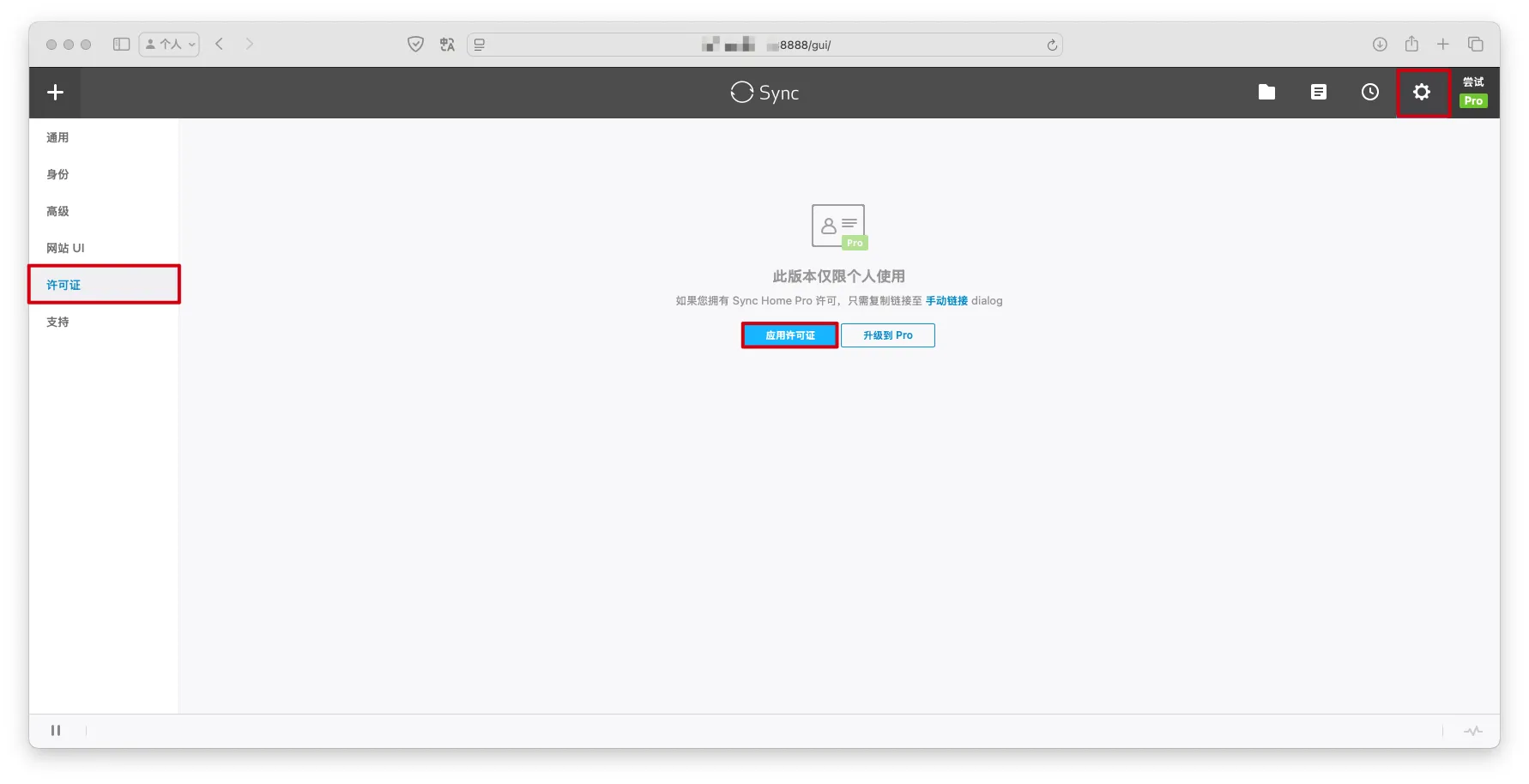 升级到SyncHomePro许可