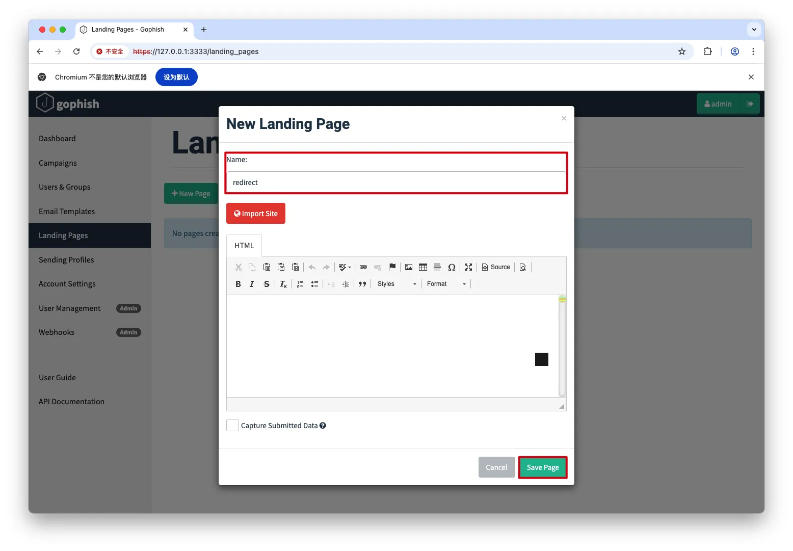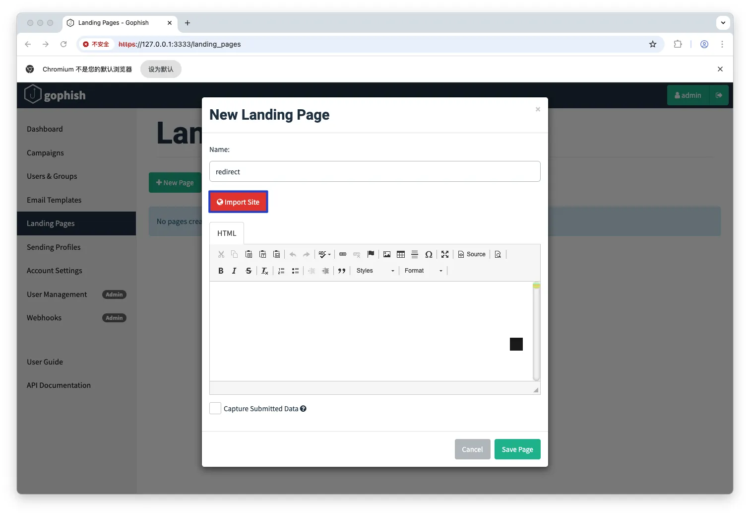 Gophish is an open-source phishing toolkit designed for businesses and penetration testers. It provides the ability to quickly and easily setup and execute phishing engagements and security awareness training.(Github)