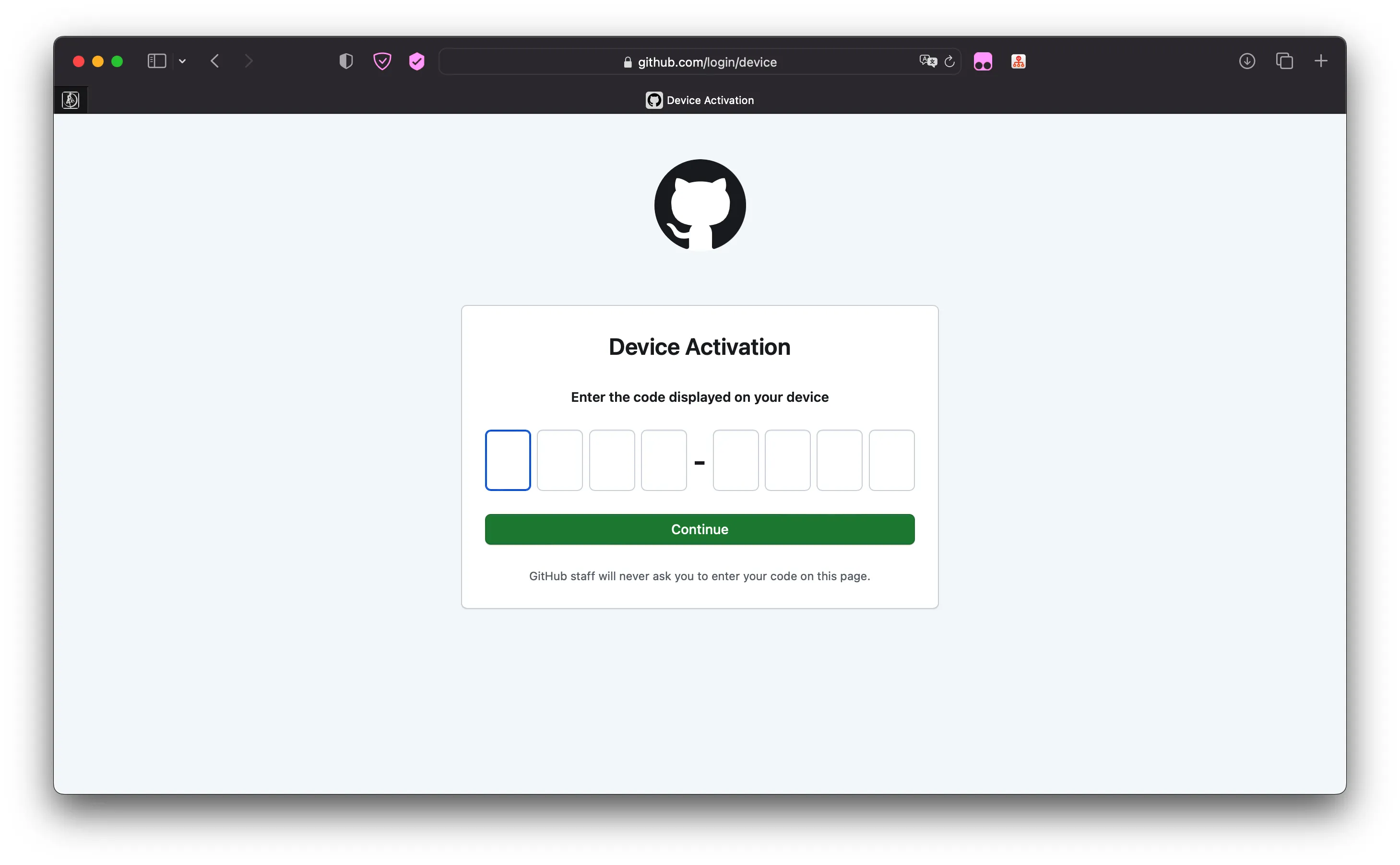 - 访问链接https://github.com/login/device,输入刚刚复制的代码