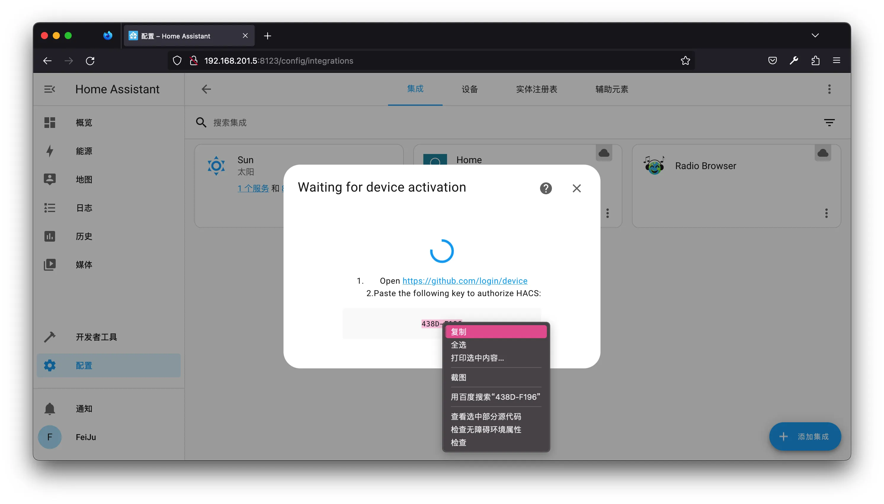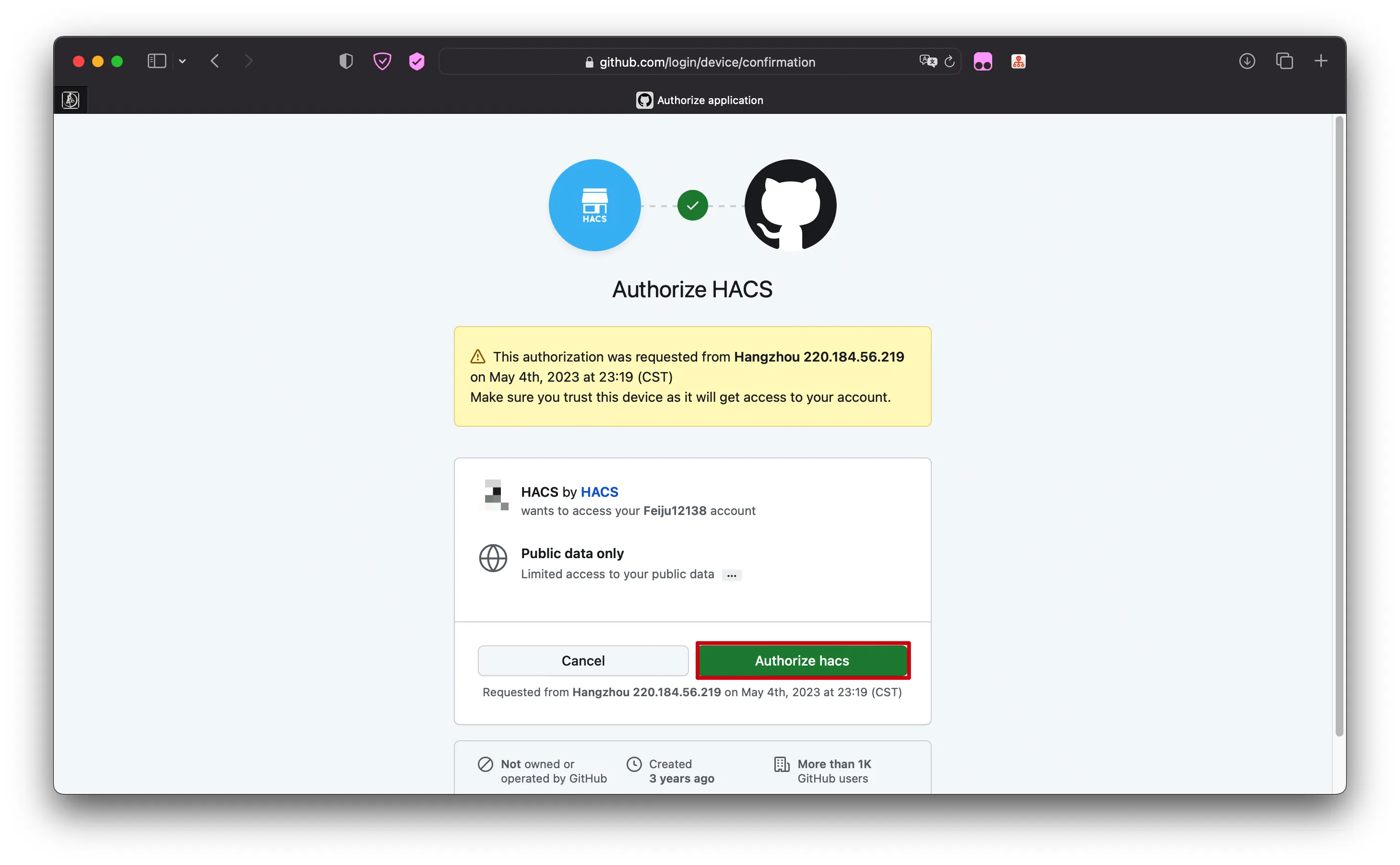 Authorize hacs绑定账号