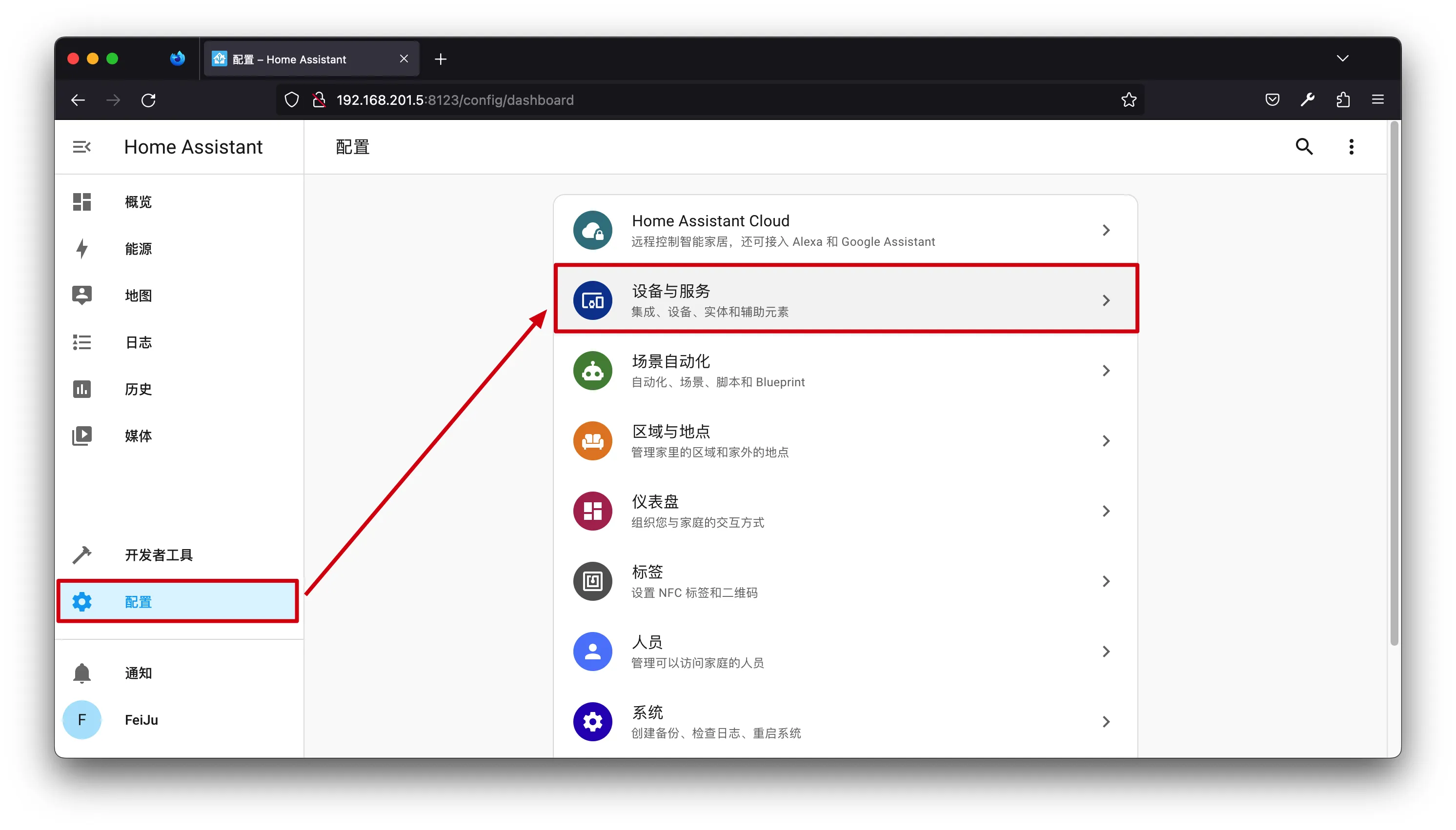 配置->设备与服务