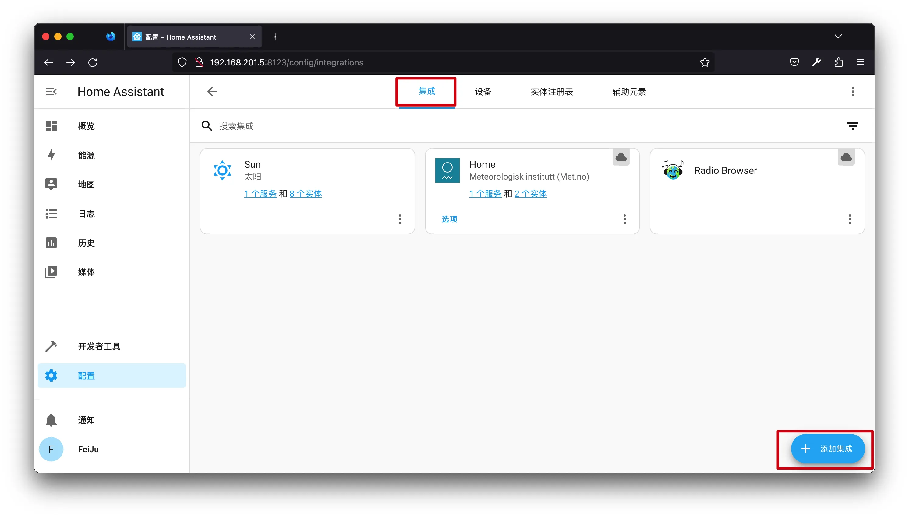 集成->添加集成