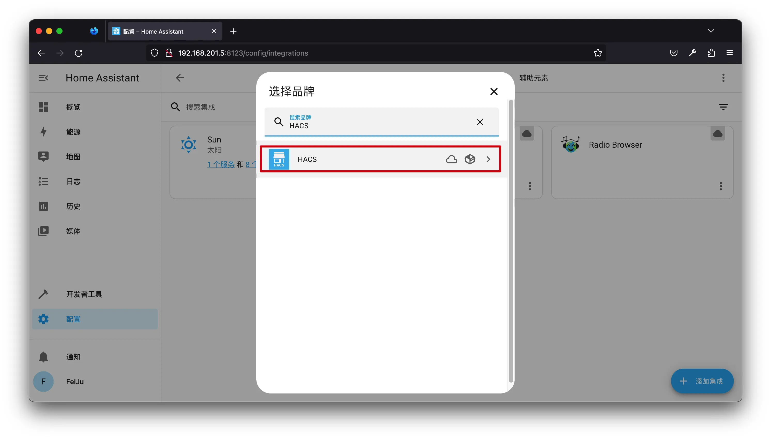 HACS->选择HACS