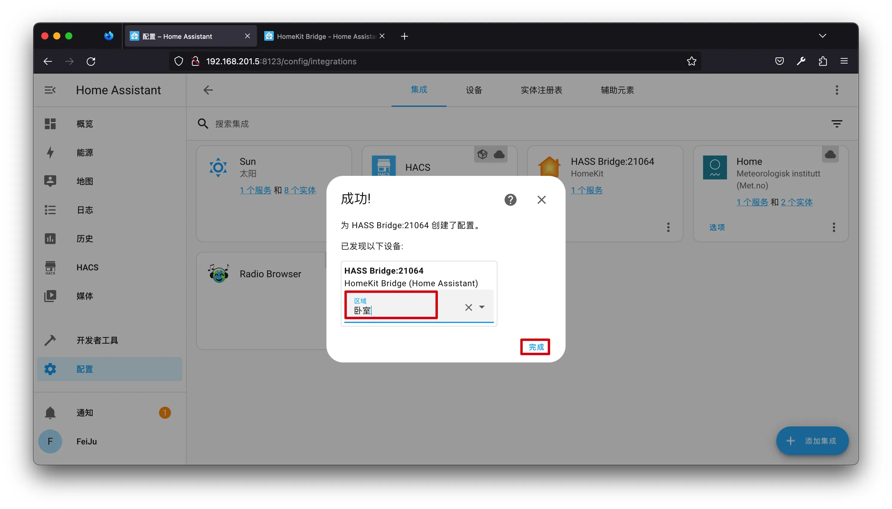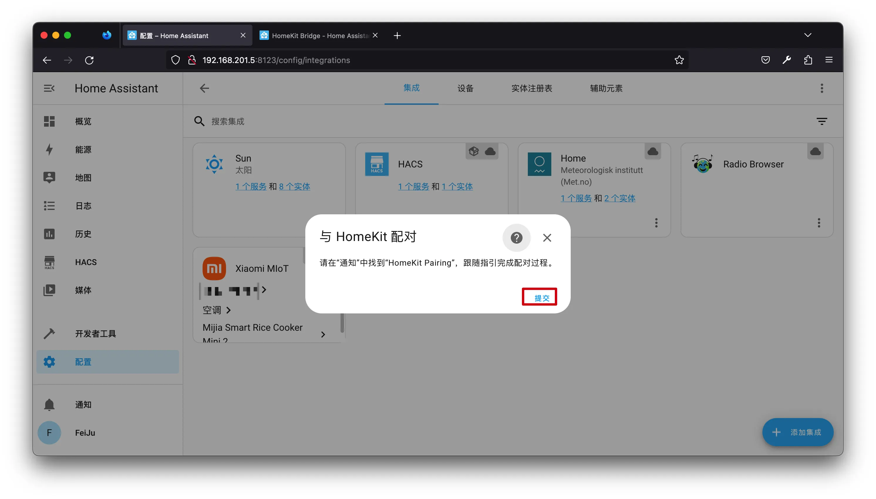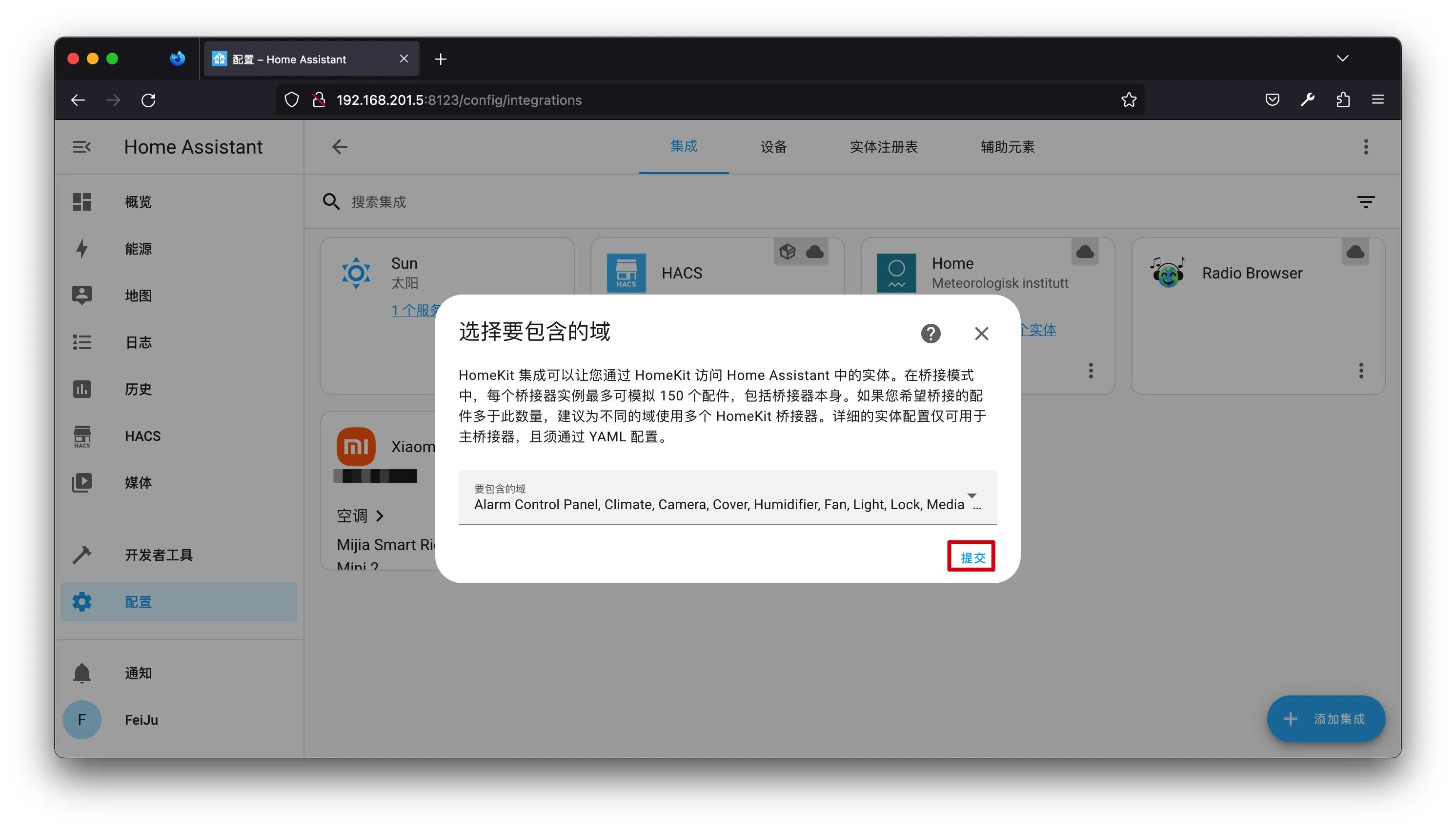 【笔记】HomeAssistant将实体桥接到苹果家庭
