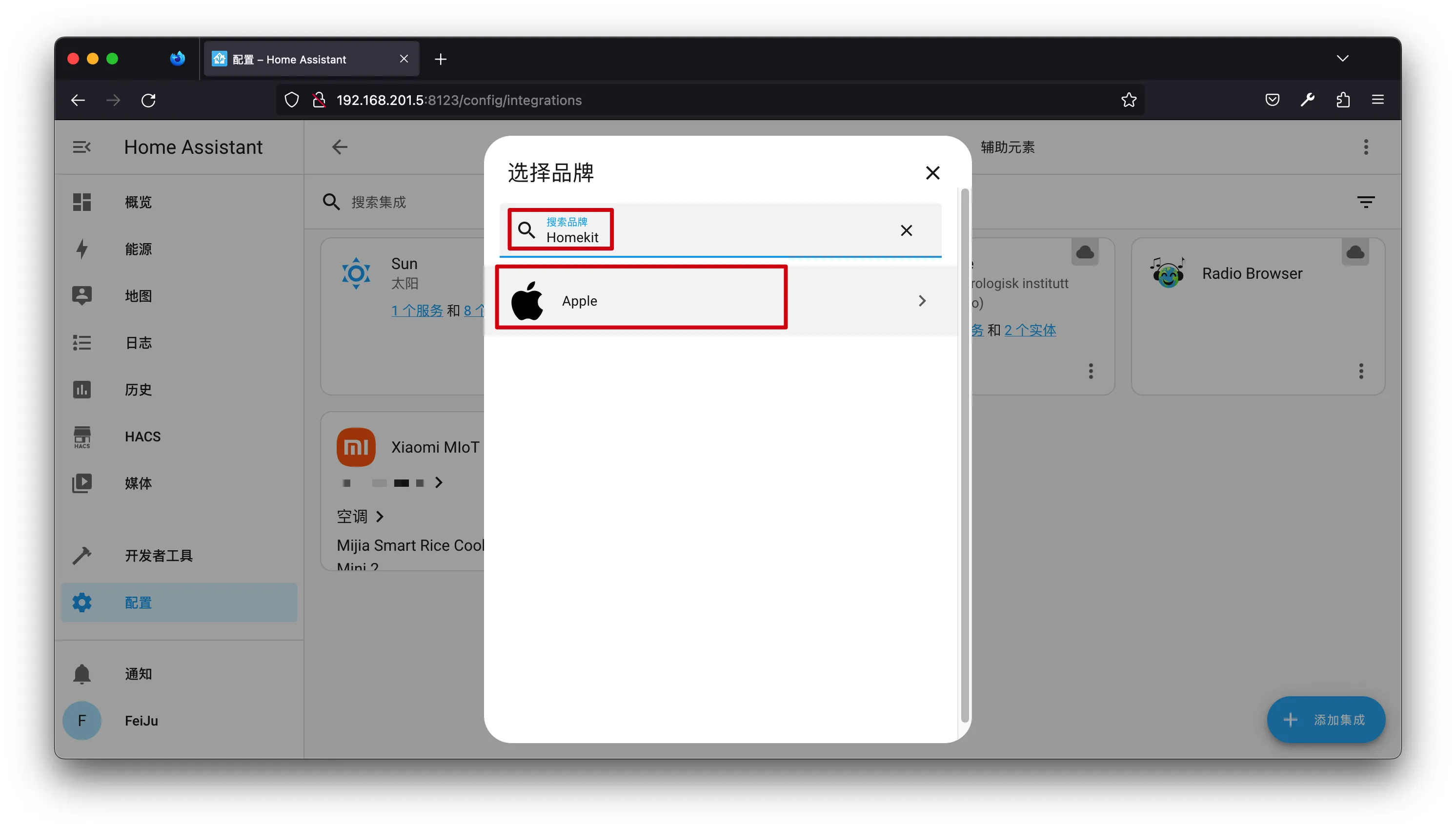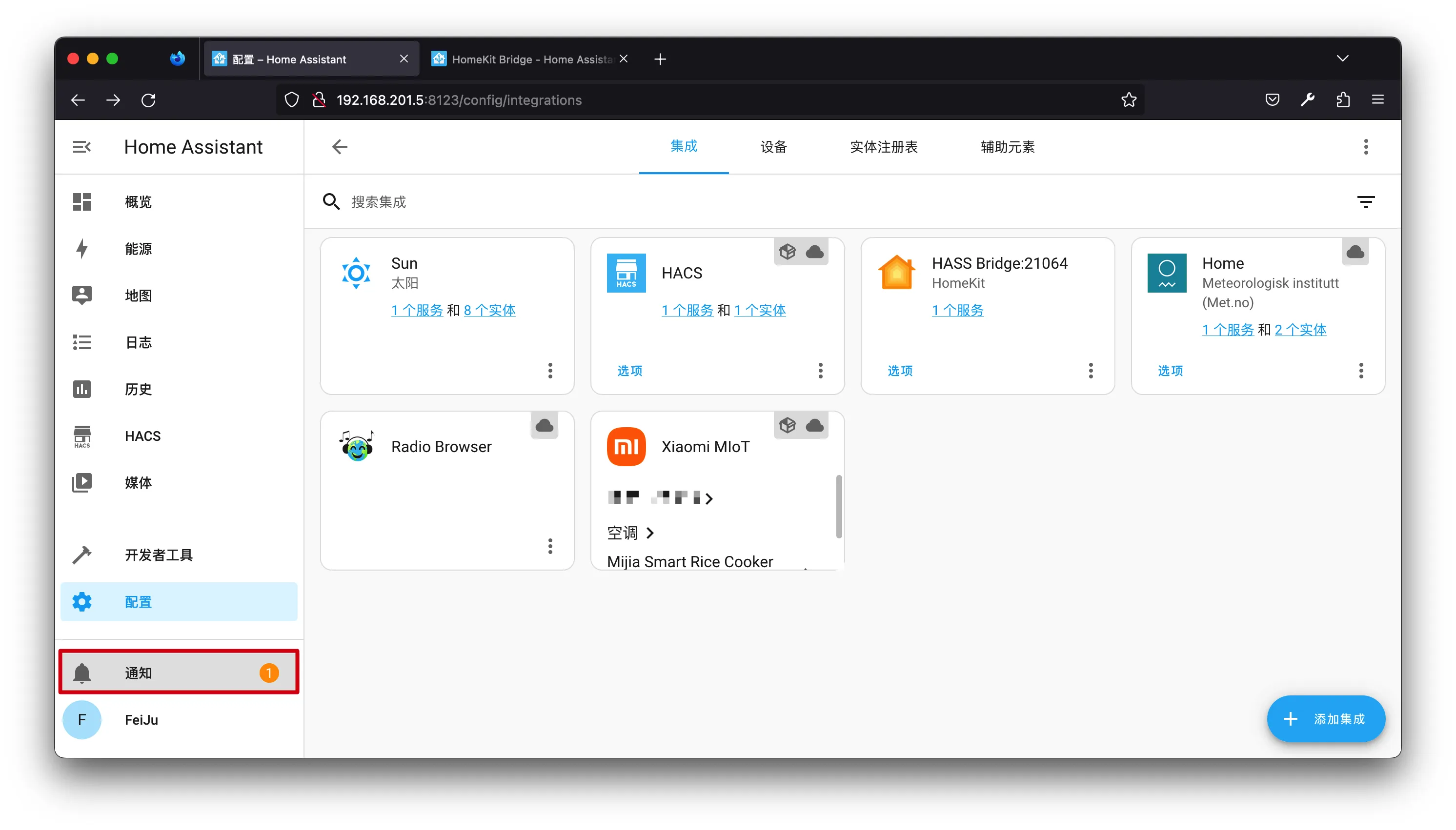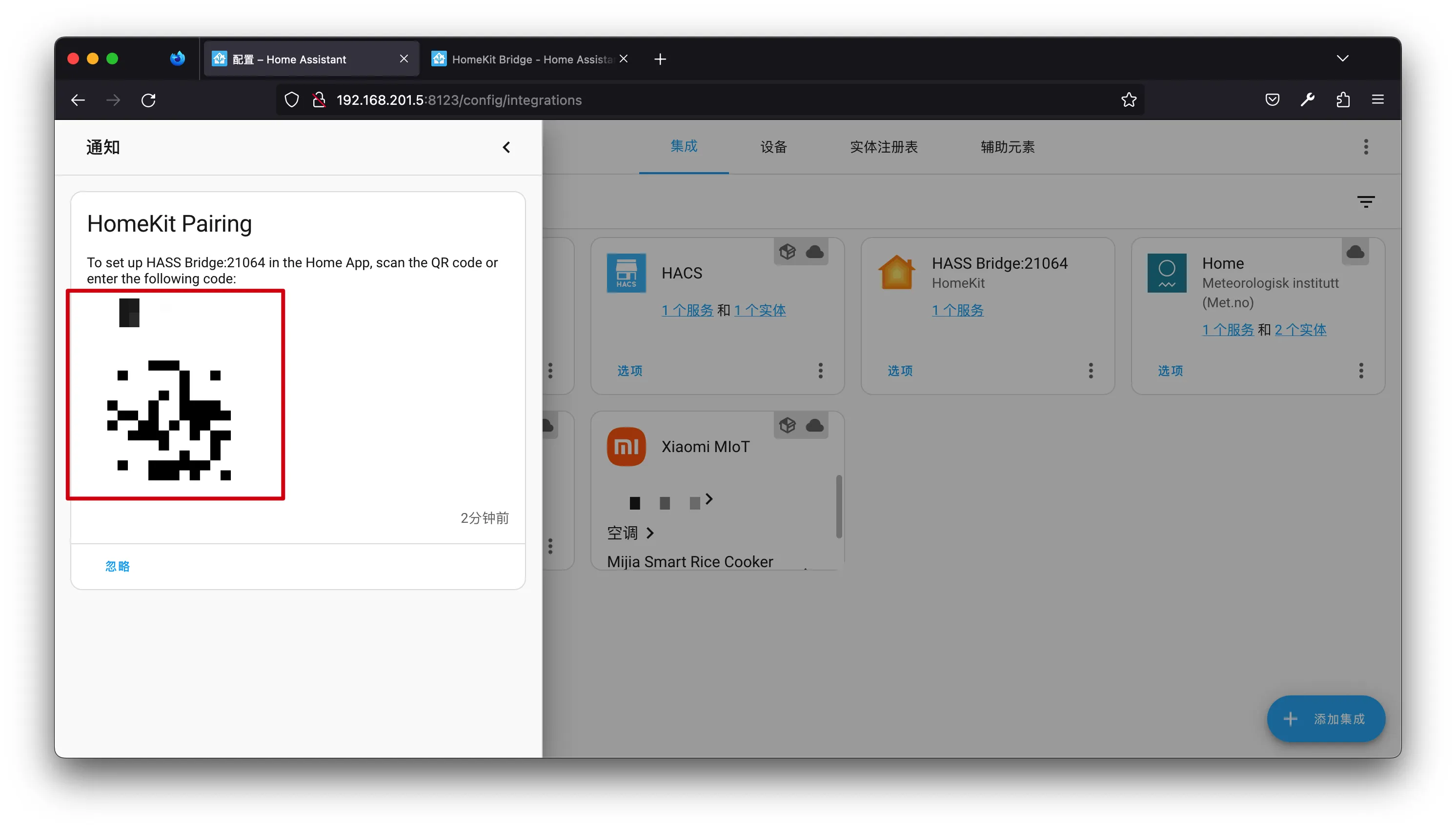 【笔记】HomeAssistant将实体桥接到苹果家庭