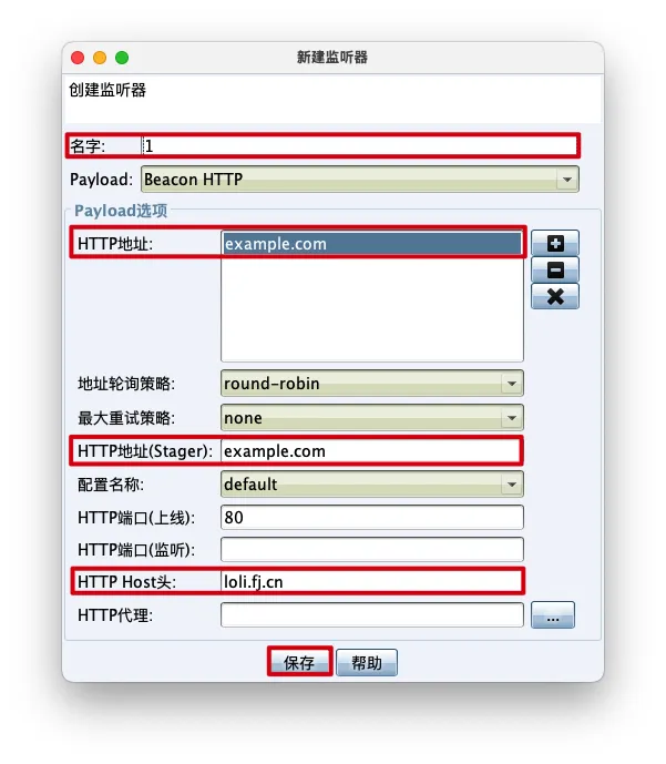 CobaltStrike->监听器->添加