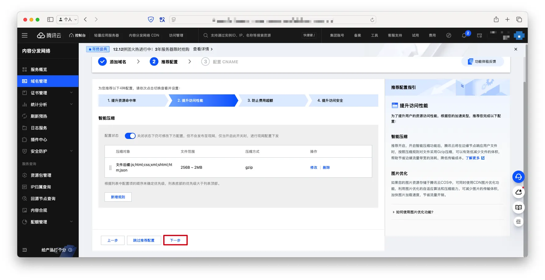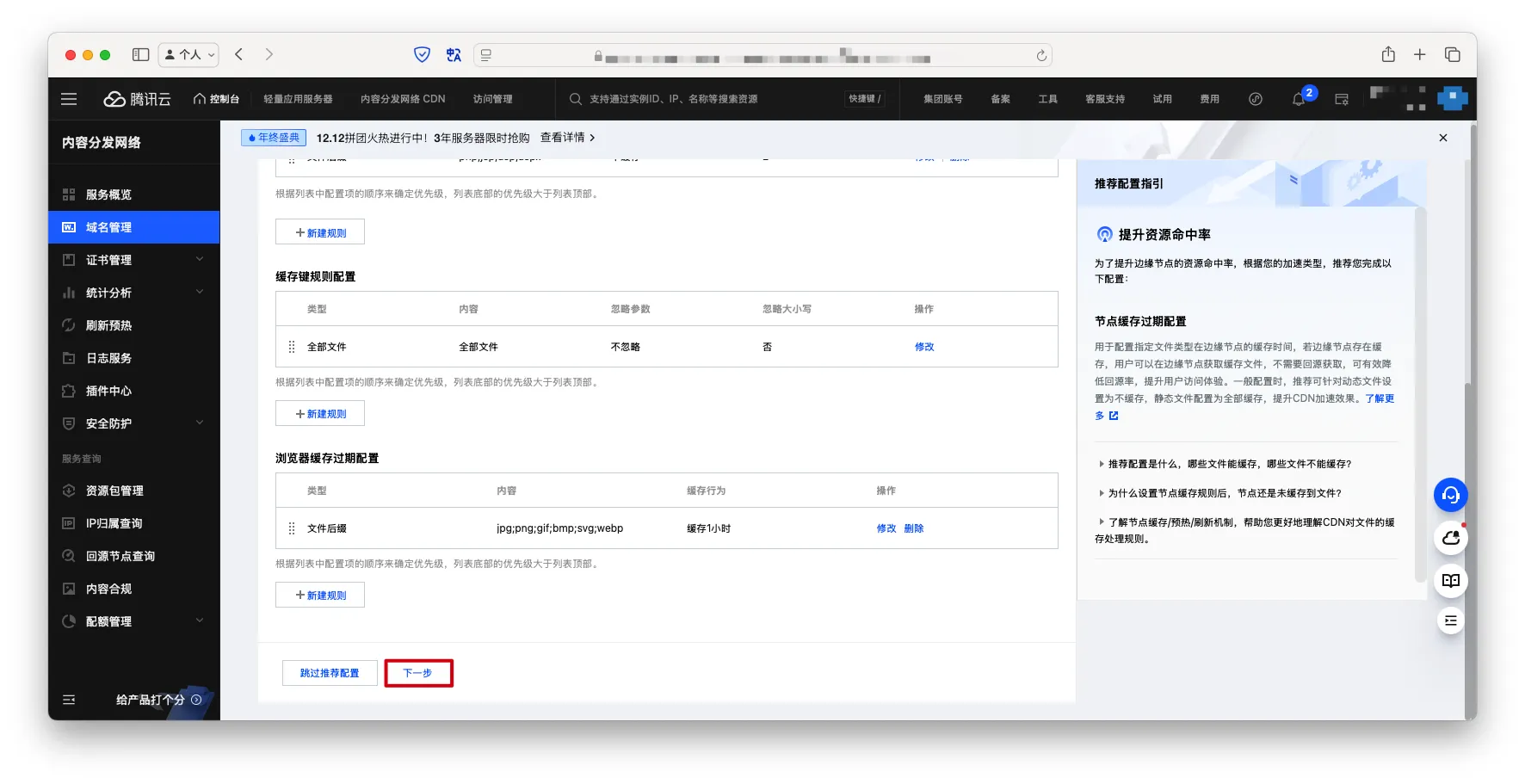 如果需要加速.html、.css、.js、图片,则业务类型选择图片小文件