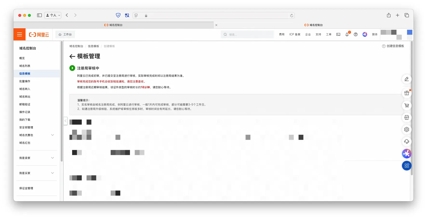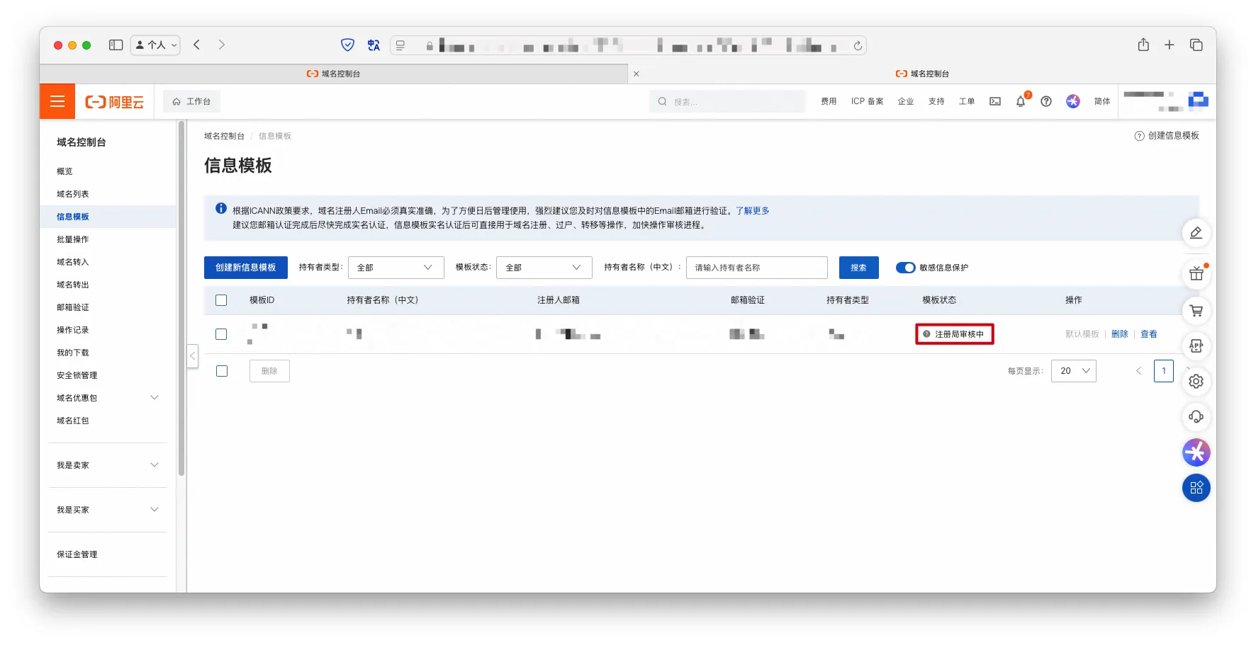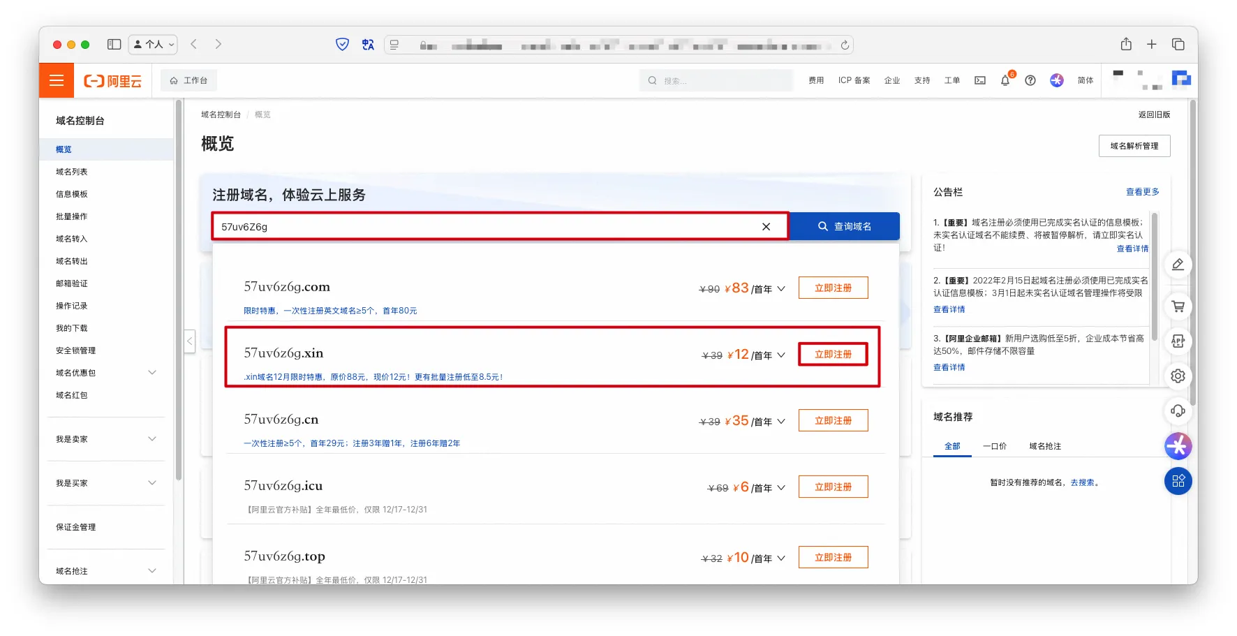 【笔记】阿里云域名注册