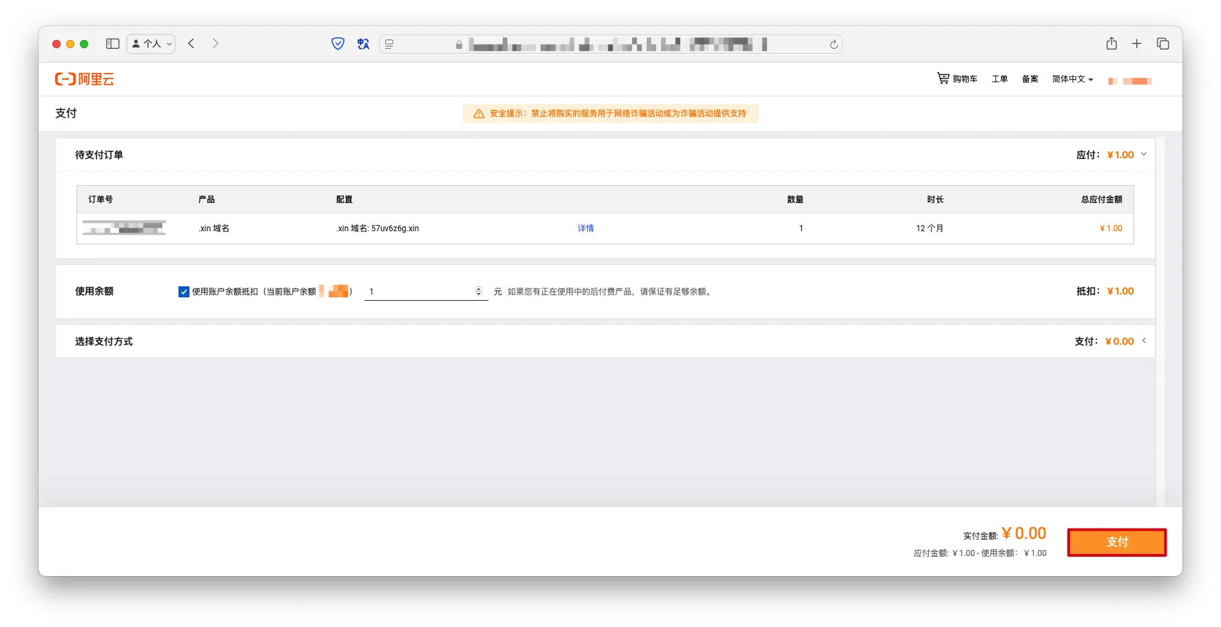 - 选择支付方式并