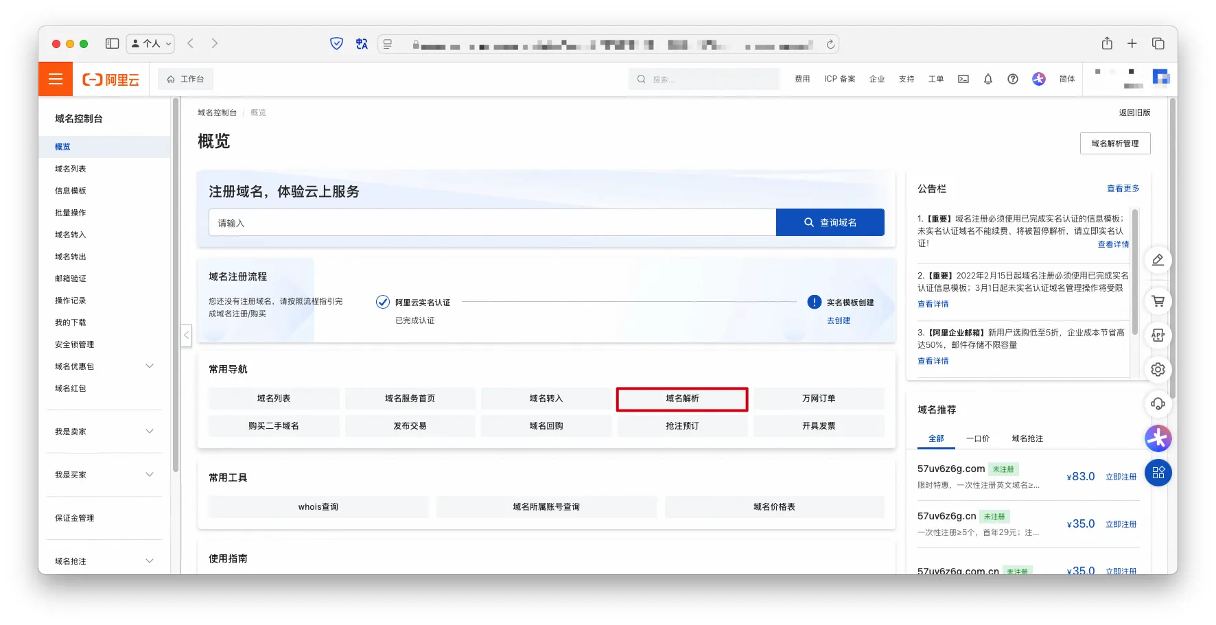 阿里云域名注册和使用学习笔记