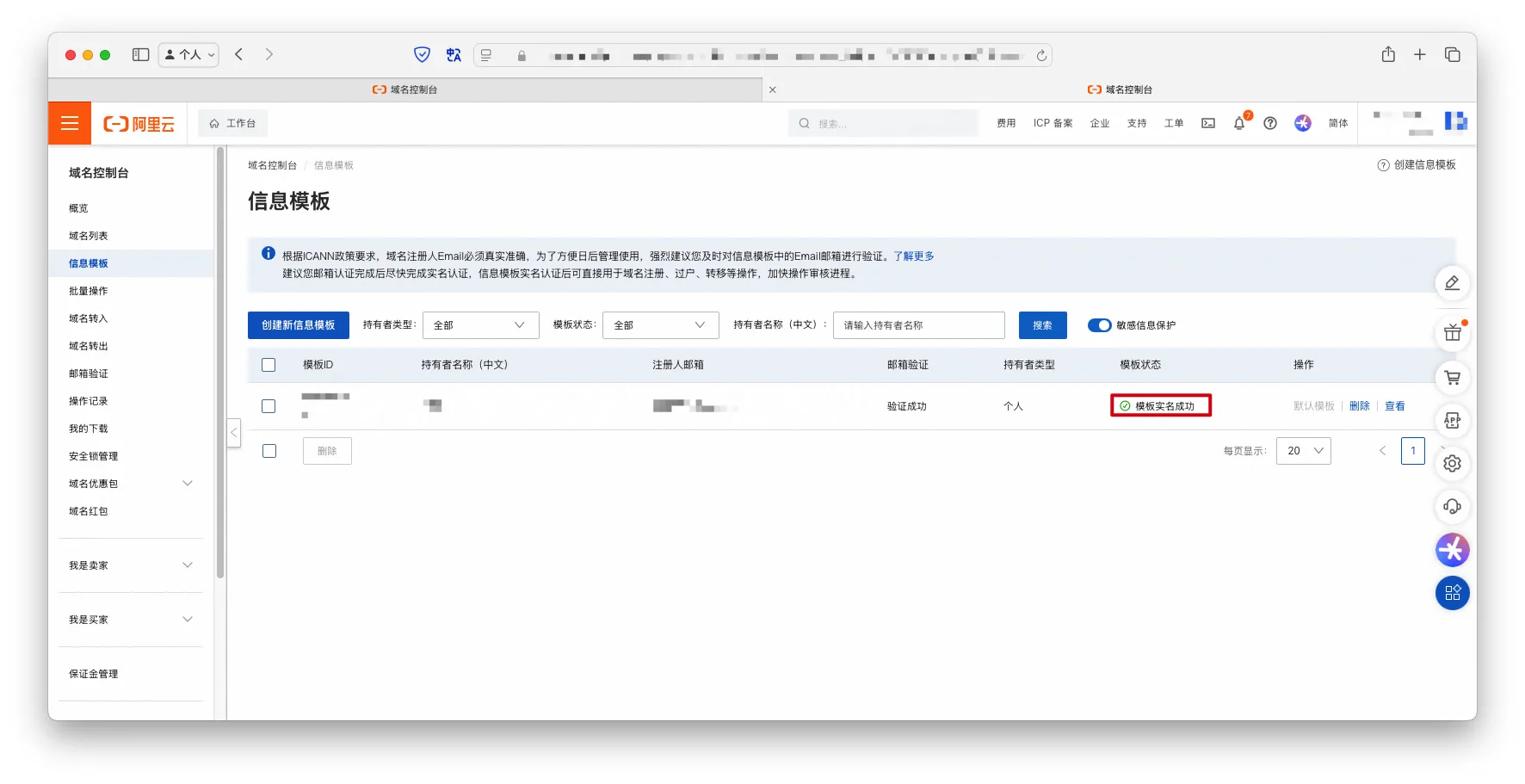 过户域名实名认证信息