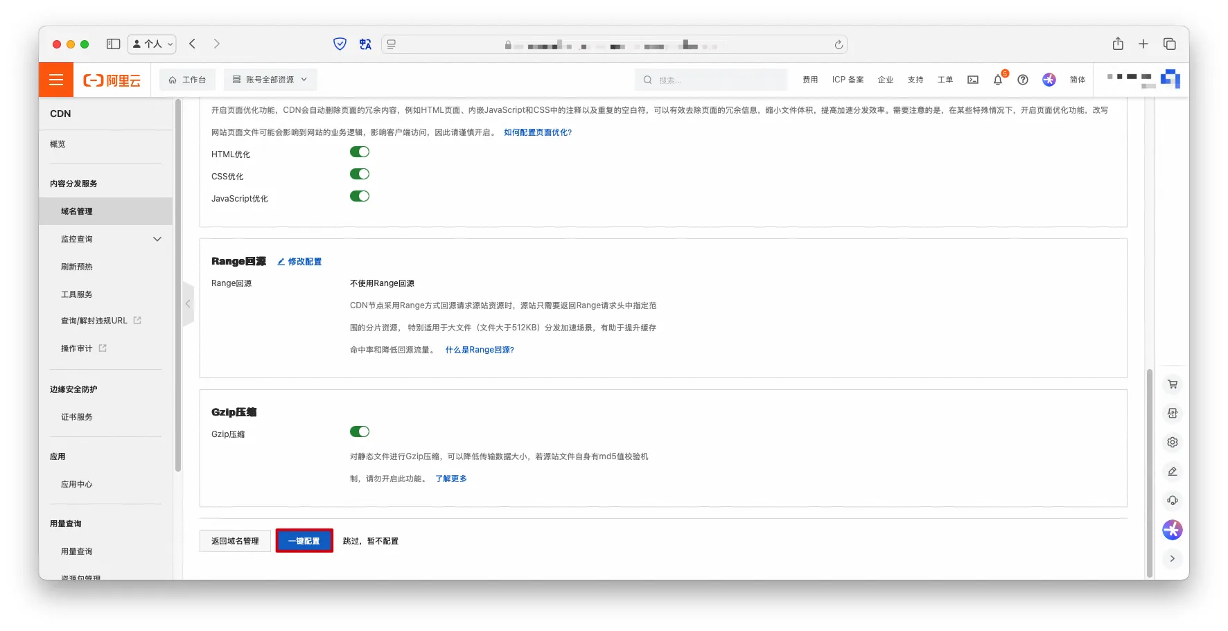 如果需要加速.html、.css、.js、图片,则业务类型选择图片小文件