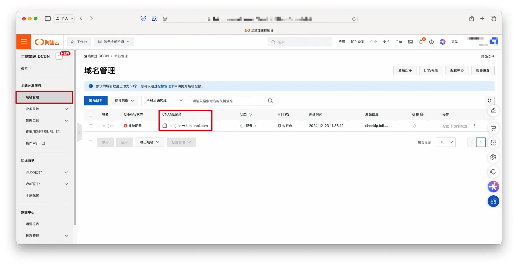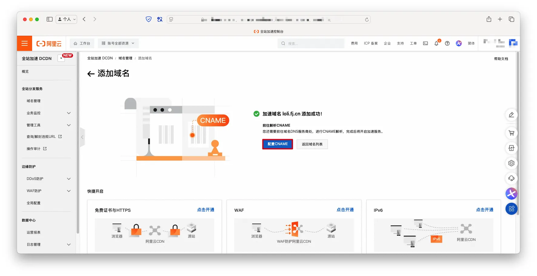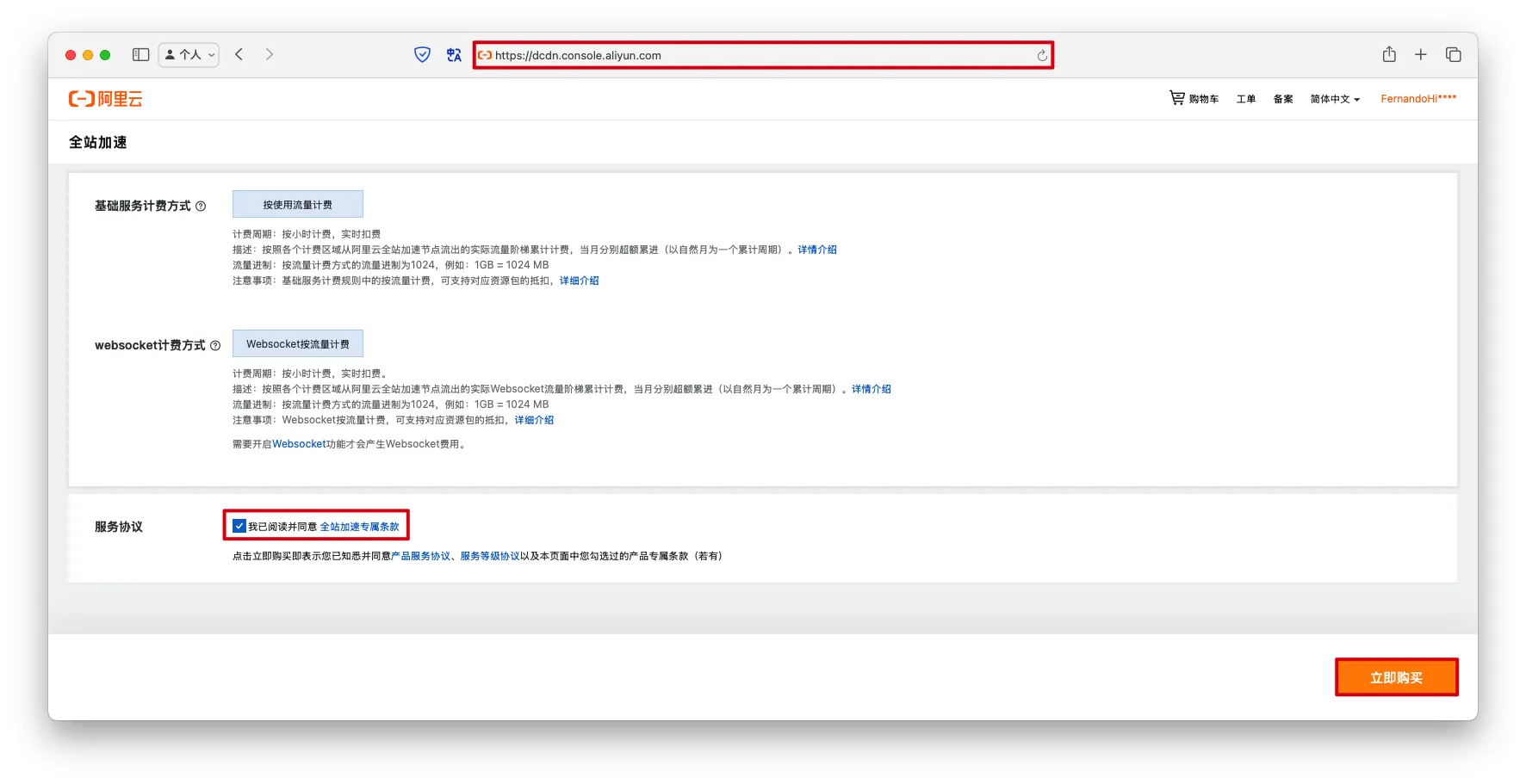 - 直接访问https://dcdn.console.aliyun.com->勾选