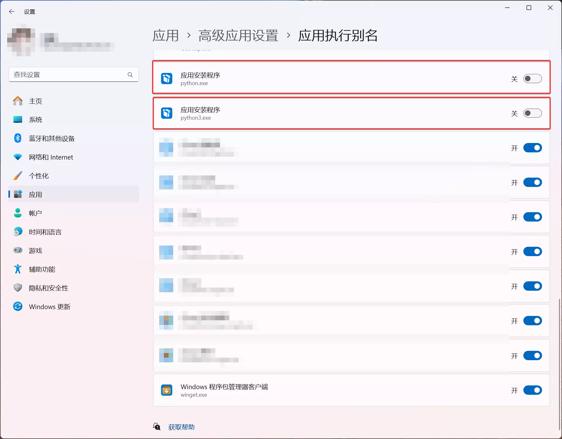 Windows10或Windows11上,执行python或python3命令时会弹出微软商店,阻止python命令打开微软商店