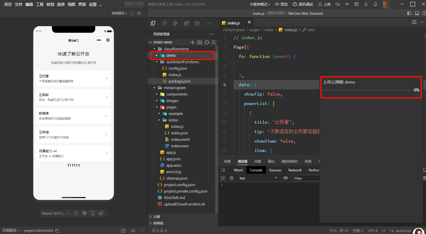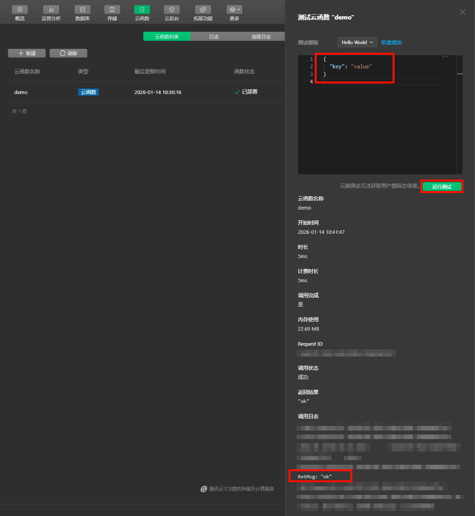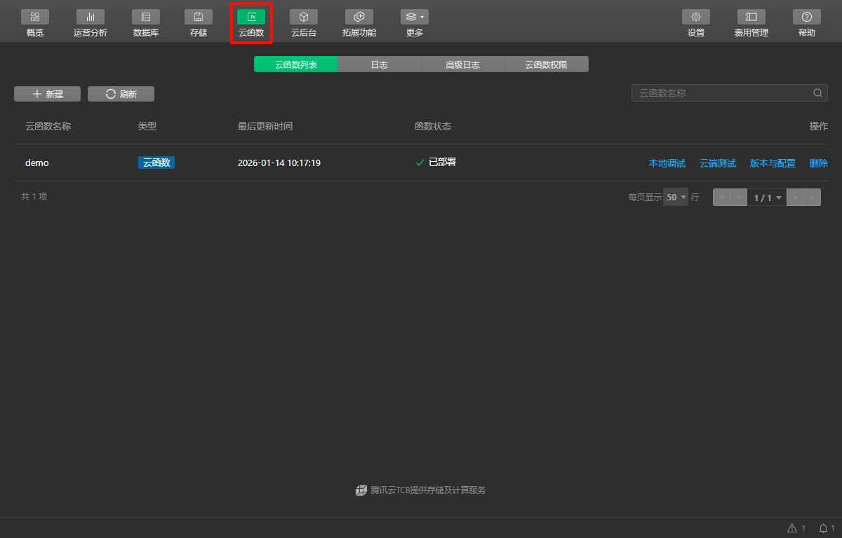 云函数->当云函数的函数状态为已部署时表示部署完成,可以正常调用
