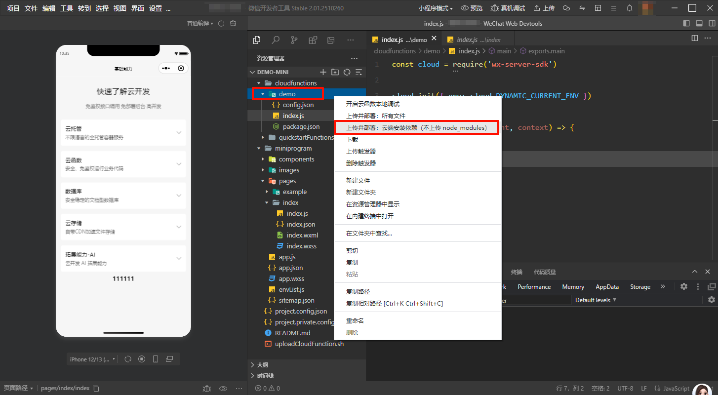 cloudfunctions/<cloud_function_name>/index.js1 2 3 4 5 6 7 8