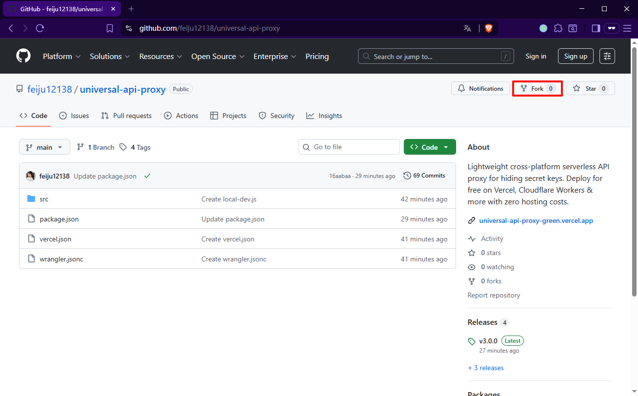 - 将feiju12138/universal-api-proxyFork到自己的仓库