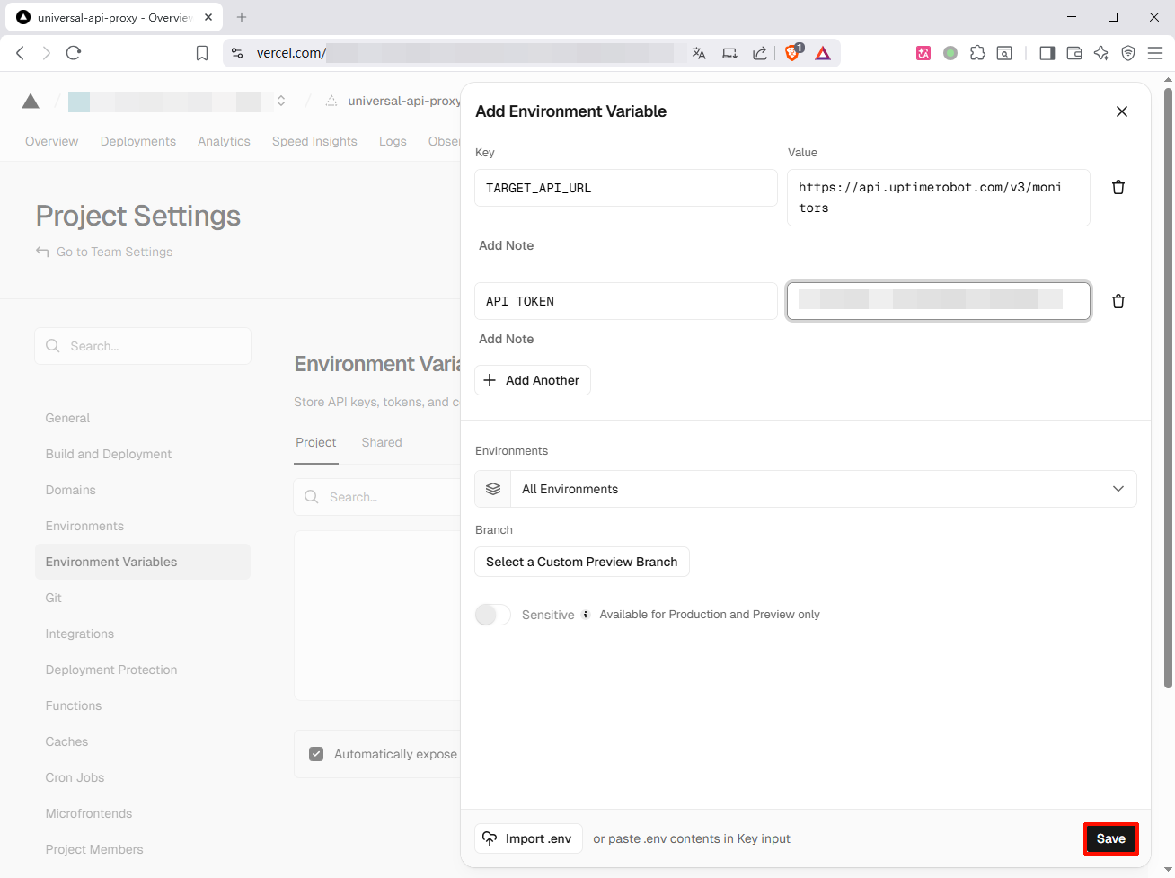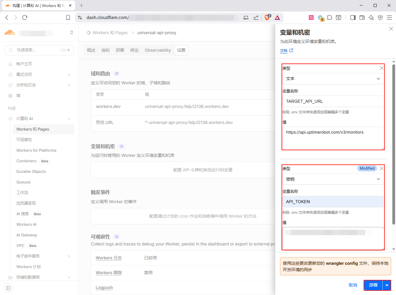 TARGET_API_URL:https://api.uptimerobot.com/v3/monitorsAPI_TOKEN:上一步骤获取的API密钥